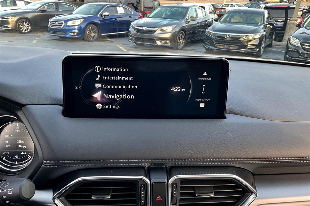 4-Wheel Disc Brakes, 6 Speakers, ABS brakes, Air Conditioning, Alloy wheels, AM/FM radio, AppLink/Apple CarPlay and Android Auto, Auto High-beam Headlights, Auto-dimming Rear-View mirror, Automatic temperature control, Brake assist, Bumpers: body-color, Delay-off headlights, Driver door bin, Driver vanity mirror, Dual front impact airbags, Dual front side impact airbags, E911 Automatic Emergency Notification, Electronic Stability Control, Emergency communication system: MAZDA CONNECT, Exterior Parking Camera Rear, First Aid Kit, Four wheel independent suspension, Front anti-roll bar, Front Bucket Seats, Front Center Armrest w/Storage, Front dual zone A/C, Front reading lights, Fully automatic headlights, Garage door transmitter: HomeLink, Heated Front Bucket Seats, Heated front seats, Illuminated entry, Infotainment System Voice Command, Leather Seat Trim, Leather Shift Knob, Leather steering wheel, Low tire pressure warning, Memory seat, Multifunction Commander Control, Occupant sensing airbag, Outside temperature display, Overhead airbag, Overhead console, Pandora, Panic alarm, Passenger door bin, Passenger vanity mirror, Power door mirrors, Power driver seat, Power Liftgate, Power moonroof, Power passenger seat, Power steering, Power windows, Radio Broadcast Data System Program Information, Radio data system, Radio: AM/FM/HD Audio System, Rain sensing wipers, Rear anti-roll bar, Rear reading lights, Rear seat center armrest, Rear window defroster, Rear window wiper, Remote keyless entry, Rhodium White Metallic Paint, SMS Text Msg Audio Delivery & Reply, Speed control, Speed-sensing steering, Split folding rear seat, Spoiler, Steering wheel mounted audio controls, Tachometer, Telescoping steering wheel, Tilt steering wheel, Traction control, Trip computer, Turn signal indicator mirrors, Variably intermittent wipers, and Wheels: 17 x 7J Aluminum Alloy.