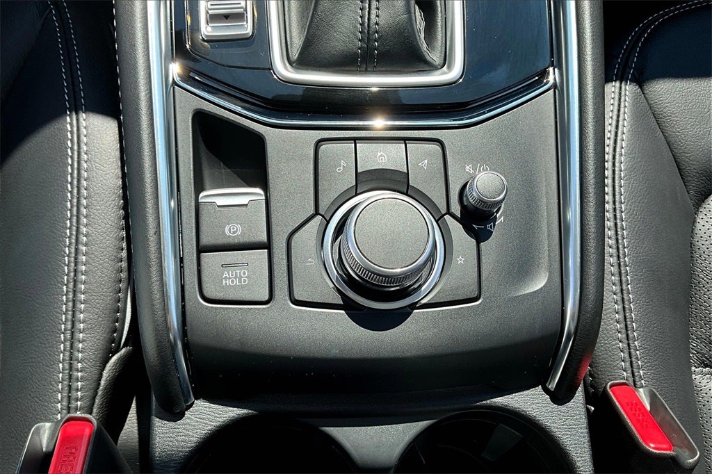 10 Speakers, 4-Wheel Disc Brakes, ABS brakes, Air Conditioning, All-Weather Floor Mats, Alloy wheels, AM/FM radio: SiriusXM, AppLink/Apple CarPlay and Android Auto, Auto High-beam Headlights, Auto-dimming Rear-View mirror, Automatic temperature control, Brake assist, Bumpers: body-color, Cargo Tray, Delay-off headlights, Driver door bin, Driver vanity mirror, Dual front impact airbags, Dual front side impact airbags, E911 Automatic Emergency Notification, Electronic Stability Control, Emergency communication system: MAZDA CONNECT, First Aid Kit, Four wheel independent suspension, Front anti-roll bar, Front Bucket Seats, Front Center Armrest w/Storage, Front dual zone A/C, Front reading lights, Fully automatic headlights, Garage door transmitter: HomeLink, Heads-Up Display, Heated door mirrors, Heated front seats, Heated rear seats, Heated steering wheel, Heated/Ventilated Front Bucket Seats, Illuminated entry, Infotainment System Voice Command, Leather Seat Trim, Leather Shift Knob, Leather steering wheel, Low tire pressure warning, Memory seat, Multifunction Commander Control, Occupant sensing airbag, Outside temperature display, Overhead airbag, Overhead console, Pandora, Panic alarm, Passenger door bin, Passenger vanity mirror, Power door mirrors, Power driver seat, Power Liftgate, Power moonroof, Power passenger seat, Power steering, Power windows, Radio Broadcast Data System Program Information, Radio data system, Radio: AM/FM/HD Audio System, Rain sensing wipers, Rear anti-roll bar, Rear Bumper Guard, Rear reading lights, Rear seat center armrest, Rear window defroster, Rear window wiper, Remote keyless entry, Retractable Cargo Cover, SMS Text Msg Audio Delivery & Reply, Speed control, Speed-sensing steering, Split folding rear seat, Spoiler, Steering wheel mounted audio controls, Tachometer, Telescoping steering wheel, Tilt steering wheel, Traction control, Trip computer, Turn signal indicator mirrors, Variably intermittent wipers, Ventilated front seats, and Wheels: 19 x 7J Aluminum Alloy.