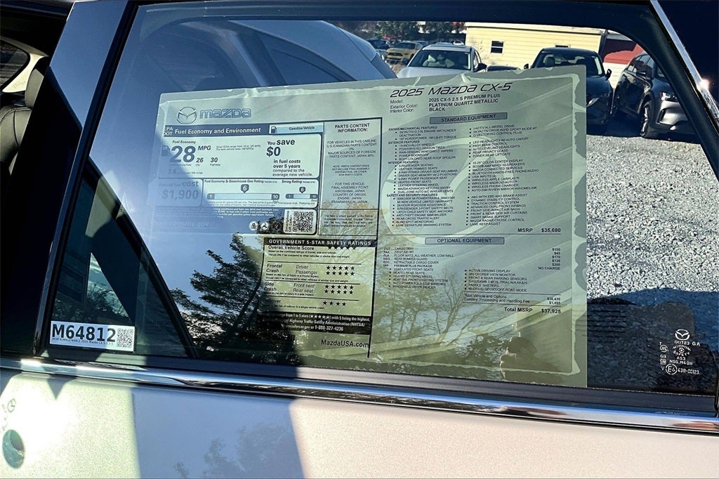 2025 Mazda CX-5 2.5 S Premium Plus Package Platinum Quartz Metallic 26/30 City/Highway MPG 4D Sport Utility AWD SKYACTIV® 2.5L 4-Cylinder DOHC 16V 6-Speed Automatic
