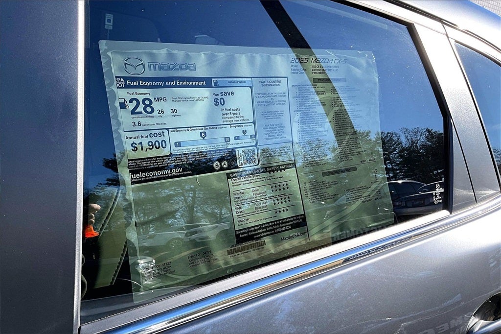 2025 Mazda CX-5 2.5 S Preferred Package Machine Gray Metallic 26/30 City/Highway MPG 4D Sport Utility AWD SKYACTIV® 2.5L 4-Cylinder DOHC 16V 6-Speed Automatic