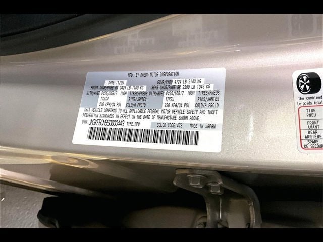 4-Wheel Disc Brakes, 6 Speakers, ABS brakes, Air Conditioning, All-Weather Floor Mats, Alloy wheels, AM/FM radio, AppLink/Apple CarPlay and Android Auto, Auto High-beam Headlights, Auto-dimming Rear-View mirror, Automatic temperature control, Brake assist, Bumpers: body-color, Cargo Tray, Delay-off headlights, Driver door bin, Driver vanity mirror, Dual front impact airbags, Dual front side impact airbags, E911 Automatic Emergency Notification, Electronic Stability Control, Emergency communication system: MAZDA CONNECT, Exterior Parking Camera Rear, First Aid Kit, Four wheel independent suspension, Front anti-roll bar, Front Bucket Seats, Front Center Armrest w/Storage, Front dual zone A/C, Front reading lights, Fully automatic headlights, Garage door transmitter: HomeLink, Heated Front Bucket Seats, Heated front seats, Illuminated entry, Infotainment System Voice Command, Leather Seat Trim, Leather Shift Knob, Leather steering wheel, Low tire pressure warning, Memory seat, Multifunction Commander Control, Occupant sensing airbag, Outside temperature display, Overhead airbag, Overhead console, Pandora, Panic alarm, Passenger door bin, Passenger vanity mirror, Power door mirrors, Power driver seat, Power Liftgate, Power moonroof, Power passenger seat, Power steering, Power windows, Radio Broadcast Data System Program Information, Radio data system, Radio: AM/FM/HD Audio System, Rain sensing wipers, Rear anti-roll bar, Rear reading lights, Rear seat center armrest, Rear window defroster, Rear window wiper, Remote keyless entry, SMS Text Msg Audio Delivery & Reply, Speed control, Speed-sensing steering, Split folding rear seat, Spoiler, Steering wheel mounted audio controls, Tachometer, Telescoping steering wheel, Tilt steering wheel, Traction control, Trip computer, Turn signal indicator mirrors, Variably intermittent wipers, and Wheels: 17 x 7J Aluminum Alloy.