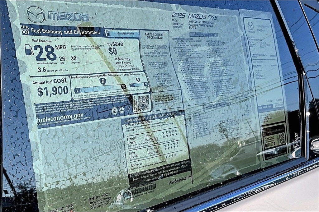 2025 Mazda CX-5 2.5 S Premium Plus Package Platinum Quartz Metallic 26/30 City/Highway MPG 4D Sport Utility AWD SKYACTIV® 2.5L 4-Cylinder DOHC 16V 6-Speed Automatic