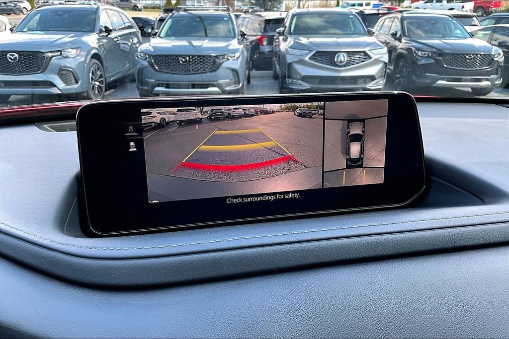 12 Speakers, 4-Wheel Disc Brakes, ABS brakes, Air Conditioning, Alloy wheels, AM/FM radio: SiriusXM, AppLink/Apple CarPlay and Android Auto, Auto High-beam Headlights, Auto-dimming door mirrors, Auto-dimming Rear-View mirror, Automatic temperature control, Black Lug Nuts & Black Wheel Locks, Brake assist, Bumpers: body-color, Cargo Cover, Cargo Tray, Compass, Delay-off headlights, Driver door bin, Driver vanity mirror, Dual front impact airbags, Dual front side impact airbags, Electronic Stability Control, Emergency communication system: MAZDA CONNECT, Exterior Parking Camera Rear, Front & Rear Splash Guards, Front anti-roll bar, Front Bucket Seats, Front Center Armrest, Front dual zone A/C, Front reading lights, Front wheel independent suspension, Fully automatic headlights, Garage door transmitter: HomeLink, Heads-Up Display, Heated door mirrors, Heated Front Bucket Seats, Heated front seats, Heated steering wheel, High Wall All-Weather Floor Mats, Illuminated entry, Knee airbag, Leather Seat Trim, Leather Shift Knob, Leather steering wheel, Low tire pressure warning, MAZDA CONNECT Infotainment System, Memory seat, Occupant sensing airbag, Outside temperature display, Overhead airbag, Overhead console, Panic alarm, Passenger door bin, Passenger vanity mirror, Power door mirrors, Power driver seat, Power Liftgate, Power moonroof, Power steering, Power windows, Radio data system, Radio: AM/FM/HD Audio System, Rain sensing wipers, Rear seat center armrest, Rear side impact airbag, Rear window defroster, Rear window wiper, Remote keyless entry, Soul Red Crystal Metallic Paint Charge, Speed control, Speed-sensing steering, Split folding rear seat, Spoiler, Steering wheel mounted audio controls, Tachometer, Telescoping steering wheel, Tilt steering wheel, Traction control, Trip computer, Turn signal indicator mirrors, Variably intermittent wipers, and Wheels: 18 x 7J Aluminum Alloy.