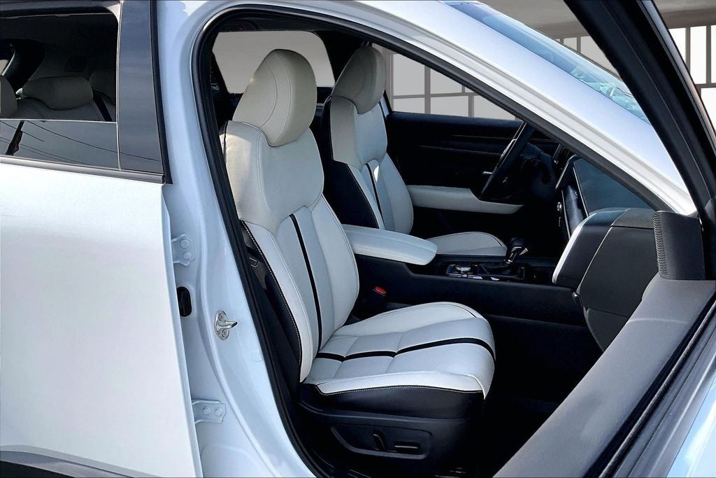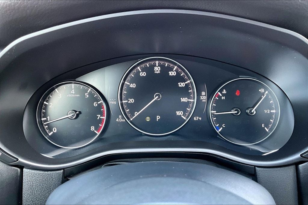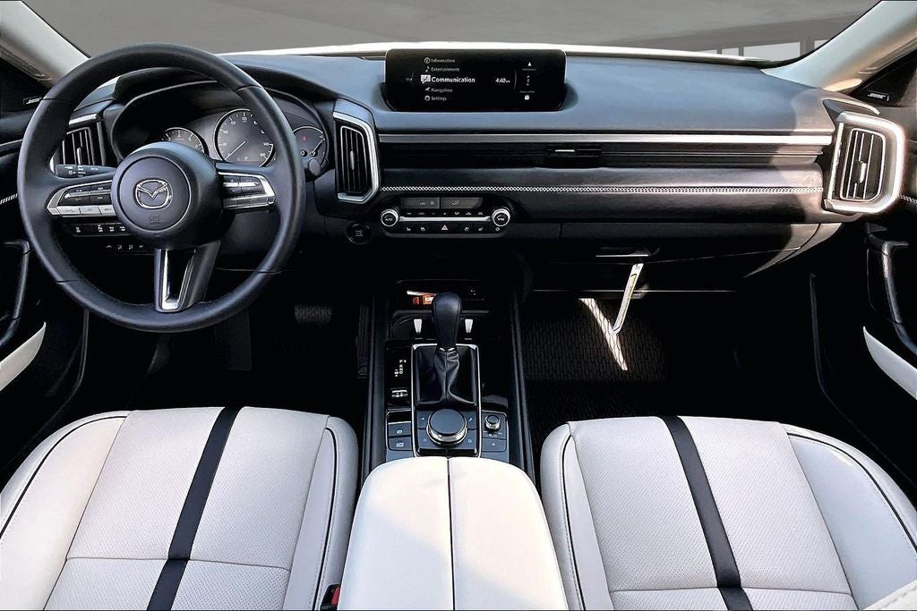Accent Package, Weather Package, 12 Speakers, 4-Wheel Disc Brakes, ABS brakes, Air Conditioning, Alloy wheels, AM/FM radio: SiriusXM, AppLink/Apple CarPlay and Android Auto, Auto High-beam Headlights, Auto-dimming Rear-View mirror, Automatic temperature control, Brake assist, Bumpers: body-color, Delay-off headlights, Driver door bin, Driver vanity mirror, Dual front impact airbags, Dual front side impact airbags, Electronic Stability Control, Emergency communication system: MAZDA CONNECT, Exterior Parking Camera Rear, Front anti-roll bar, Front Bucket Seats, Front Center Armrest, Front dual zone A/C, Front reading lights, Front wheel independent suspension, Fully automatic headlights, Garage door transmitter: HomeLink, Heads-Up Display, Heated and Ventilated Front Seats with 3 Level Adjustment, Heated door mirrors, Heated front seats, Illuminated entry, Knee airbag, Leather Seat Trim, Leather Shift Knob, Leather steering wheel, Low tire pressure warning, Memory seat, Occupant sensing airbag, Outside temperature display, Overhead airbag, Overhead console, Panic alarm, Passenger door bin, Passenger vanity mirror, Power door mirrors, Power driver seat, Power Liftgate, Power moonroof, Power passenger seat, Power steering, Power windows, Radio data system, Radio: AM/FM/HD Bose 12-Speaker Audio Sound System, Rain sensing wipers, Rear seat center armrest, Rear window defroster, Rear window wiper, Remote keyless entry, Speed control, Speed-sensing steering, Split folding rear seat, Spoiler, Steering wheel mounted audio controls, Tachometer, Telescoping steering wheel, Tilt steering wheel, Traction control, Trip computer, Turn signal indicator mirrors, Variably intermittent wipers, Ventilated front seats, Wheels: 20 x 8J Aluminum Alloy Black Metallic with Machining Cut, and Wind Chill Pearl and White Interior.