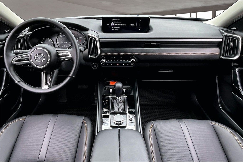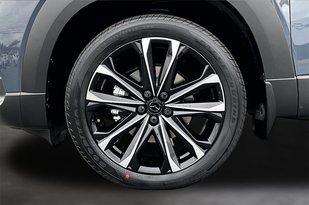 Accent Package, 12 Speakers, 4-Wheel Disc Brakes, ABS brakes, Air Conditioning, Alloy wheels, AM/FM radio: SiriusXM, AppLink/Apple CarPlay and Android Auto, Auto High-beam Headlights, Auto-dimming door mirrors, Auto-dimming Rear-View mirror, Automatic temperature control, Black Lug Nuts and Black Wheel Locks, Brake assist, Bumpers: body-color, Compass, Delay-off headlights, Driver door bin, Driver vanity mirror, Dual front impact airbags, Dual front side impact airbags, Electronic Stability Control, Emergency communication system: MAZDA CONNECT, Front and Rear Splash Guards, Front anti-roll bar, Front Bucket Seats, Front Center Armrest, Front dual zone A/C, Front reading lights, Front wheel independent suspension, Fully automatic headlights, Garage door transmitter: HomeLink, Heads-Up Display, Heated and Ventilated Front Seats with 3 Level Adjustment, Heated door mirrors, Heated front seats, Heated rear seats, Heated steering wheel, Illuminated entry, Knee airbag, Leather Seat Trim, Leather Shift Knob, Leather steering wheel, Low tire pressure warning, Memory seat, Navigation system: MAZDA CONNECT, Occupant sensing airbag, Outside temperature display, Overhead airbag, Overhead console, Panic alarm, Passenger door bin, Passenger vanity mirror, Polymetal Gray Metallic Paint Charge, Power door mirrors, Power driver seat, Power Liftgate, Power moonroof, Power passenger seat, Power steering, Power windows, Radio data system, Radio: AM/FM/HD Bose 12-Speaker Audio Sound System and Navigation, Rain sensing wipers, Rear seat center armrest, Rear window defroster, Rear window wiper, Remote keyless entry, Silver Cross Bars, Speed control, Speed-sensing steering, Split folding rear seat, Spoiler, Steering wheel mounted audio controls, Tachometer, Telescoping steering wheel, Tilt steering wheel, Traction control, Trip computer, Turn signal indicator mirrors, Variably intermittent wipers, Ventilated front seats, and Wheels: 20 x 8J Aluminum Alloy Black Metallic with Machining Cut.