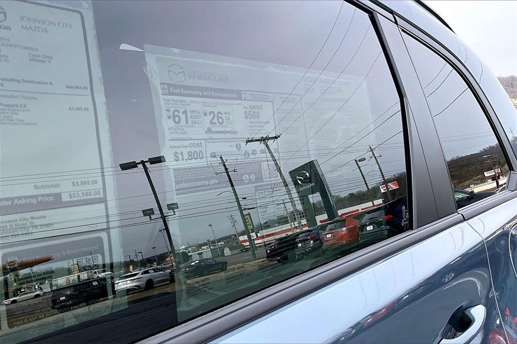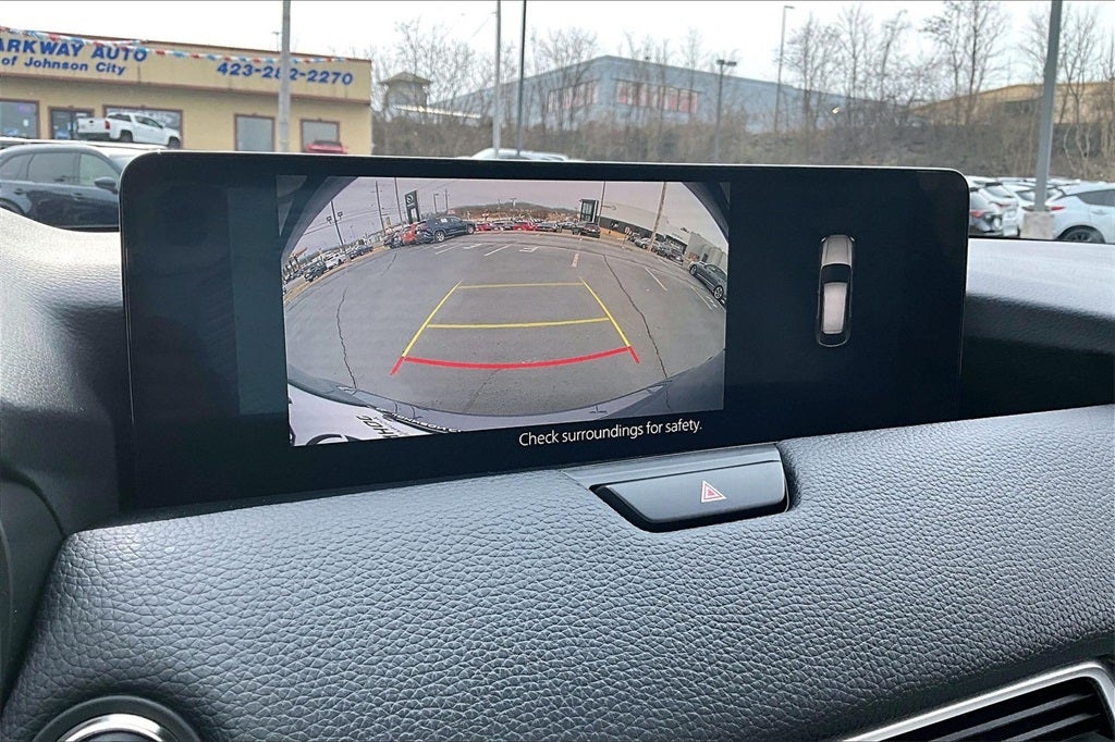 12 Speakers, 4-Wheel Disc Brakes, ABS brakes, Air Conditioning, All Weather Floor Mats, Alloy wheels, AM/FM radio: SiriusXM, AppLink/Apple CarPlay and Android Auto, Auto High-beam Headlights, Auto-dimming door mirrors, Auto-dimming Rear-View mirror, Automatic temperature control, Brake assist, Bumpers: body-color, Cargo Storage Shelf, Compass, Delay-off headlights, Driver door bin, Driver vanity mirror, Dual front impact airbags, Dual front side impact airbags, E911 Automatic Emergency Notification, Electronic Stability Control, Emergency communication system: MAZDA CONNECT, Exterior Parking Camera Rear, Four wheel independent suspension, Front anti-roll bar, Front Bucket Seats, Front Center Armrest w/Storage, Front dual zone A/C, Front reading lights, Fully automatic headlights, Garage door transmitter: HomeLink, Heads-Up Display, Heated door mirrors, Heated front seats, Heated rear seats, Heated steering wheel, Heated/Ventilated Front Bucket Seats, Illuminated entry, Infotainment System Voice Command, Knee airbag, Leather Seat Trim, Leather Shift Knob, Leather steering wheel, Low tire pressure warning, Mazda Connected Services, Memory seat, Navigation system: MAZDA CONNECT, Occupant sensing airbag, Outside temperature display, Overhead airbag, Overhead console, Panic alarm, Passenger door bin, Passenger vanity mirror, Polymetal Gray Metallic Paint Charge, Power door mirrors, Power driver seat, Power Liftgate, Power passenger seat, Power steering, Power windows, Radio Broadcast Data System Program Information, Radio data system, Radio: AM/FM with 8 Speaker Sound System, Rain sensing wipers, Rear air conditioning, Rear anti-roll bar, Rear reading lights, Rear seat center armrest, Rear window defroster, Rear window wiper, Remote keyless entry, SMS Text Msg Audio Delivery and Reply, Speed control, Speed-sensing steering, Split folding rear seat, Spoiler, Steering wheel mounted audio controls, Tachometer, Telescoping steering wheel, Tilt steering wheel, Traction control, Trip computer, Turn signal indicator mirrors, Variably intermittent wipers, Ventilated front seats, and Wheels: 19 x 8J Aluminum Alloy.