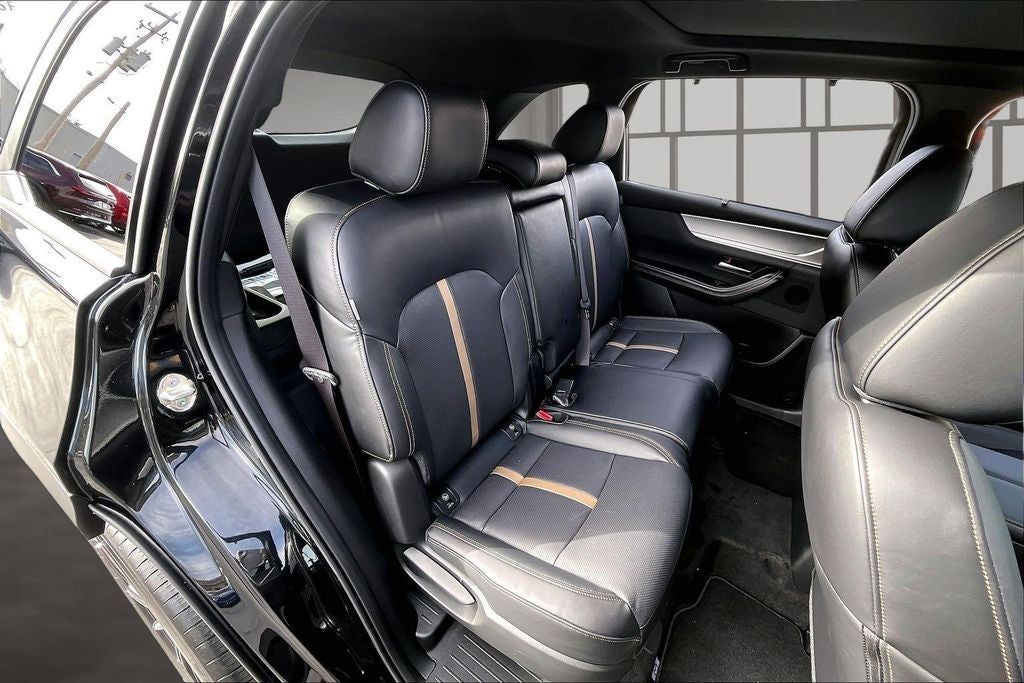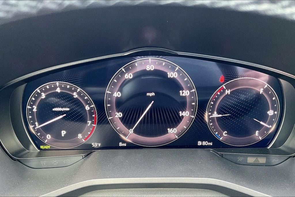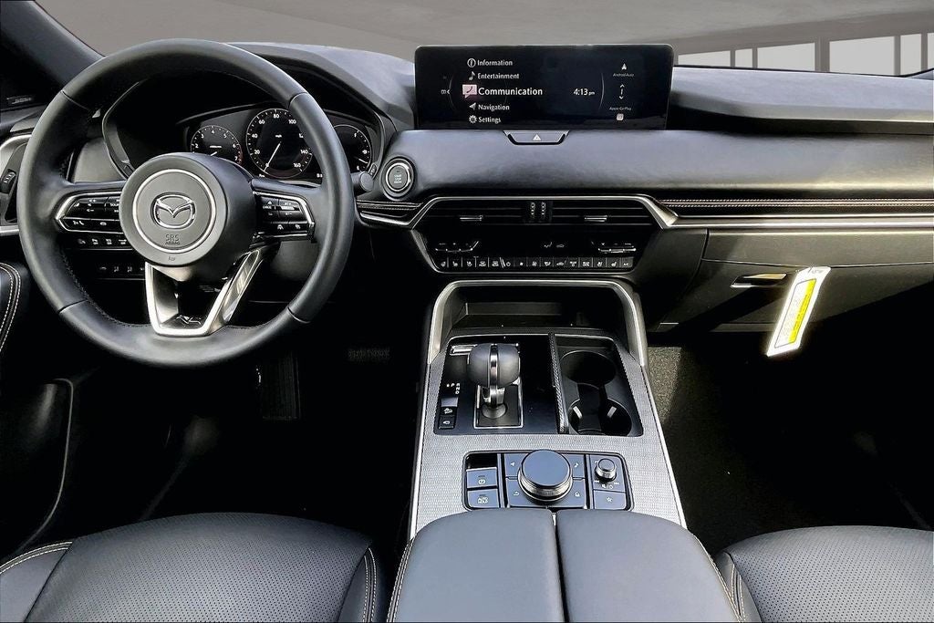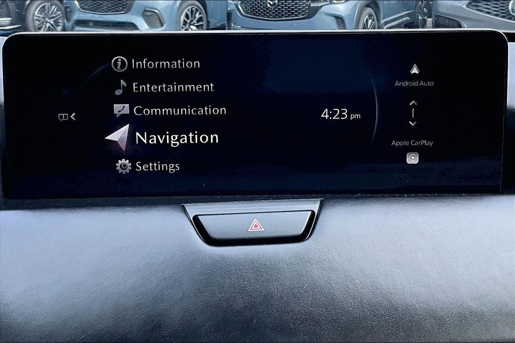 12 Speakers, 4-Wheel Disc Brakes, ABS brakes, Air Conditioning, All Weather Floor Mats, Alloy wheels, AM/FM radio: SiriusXM, Auto High-beam Headlights, Auto-dimming door mirrors, Auto-dimming Rear-View mirror, Automatic temperature control, Black Lug Nuts and Black Wheel Locks, Brake assist, Bumpers: body-color, Cargo Blocks, Compass, Delay-off headlights, Driver door bin, Driver vanity mirror, Dual front impact airbags, Dual front side impact airbags, E911 Automatic Emergency Notification, Electronic Stability Control, Emergency communication system: MAZDA CONNECT, Four wheel independent suspension, Front anti-roll bar, Front Bucket Seats, Front Center Armrest w/Storage, Front dual zone A/C, Front reading lights, Fully automatic headlights, Garage door transmitter: HomeLink, Heads-Up Display, Heated door mirrors, Heated front seats, Heated rear seats, Heated steering wheel, Heated/Ventilated Front Bucket Seats, Illuminated entry, Infotainment System Voice Command, Knee airbag, Leather Shift Knob, Leather steering wheel, Low tire pressure warning, Mazda Connected Services, Mazda Online Navigation, Memory seat, Nappa Leather Seat Trim, Navigation system: MAZDA CONNECT, Occupant sensing airbag, Outside temperature display, Overhead airbag, Overhead console, Panic alarm, Passenger door bin, Passenger vanity mirror, Power door mirrors, Power driver seat, Power Liftgate, Power moonroof, Power passenger seat, Power steering, Power windows, Radio Broadcast Data System Program Information, Radio data system, Radio: AM/FM with Bose Premium Audio Sound System, Rain sensing wipers, Rear air conditioning, Rear anti-roll bar, Rear reading lights, Rear seat center armrest, Rear window defroster, Rear window wiper, Remote keyless entry, Security system, SMS Text Message Audio Delivery and Reply, Speed control, Speed-sensing steering, Split folding rear seat, Spoiler, Steering wheel mounted audio controls, Tachometer, Telescoping steering wheel, Tilt steering wheel, Traction control, Trip computer, Variably intermittent wipers, Ventilated front seats, and Wheels: 21 x 9.5J Aluminum Alloy.