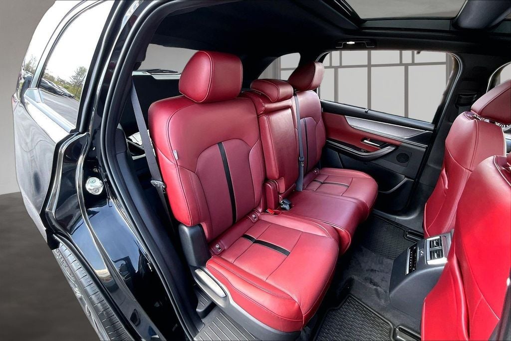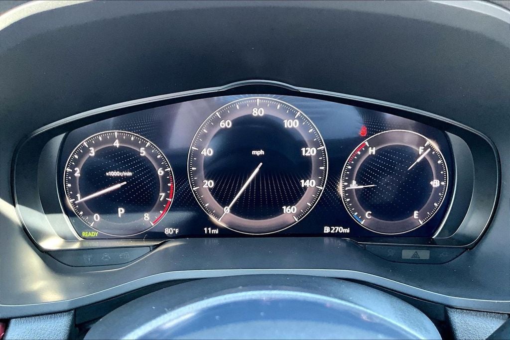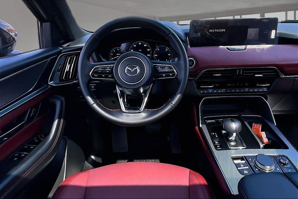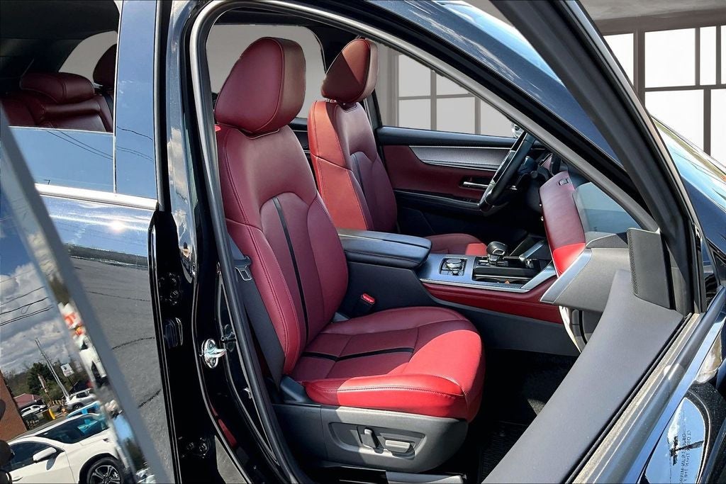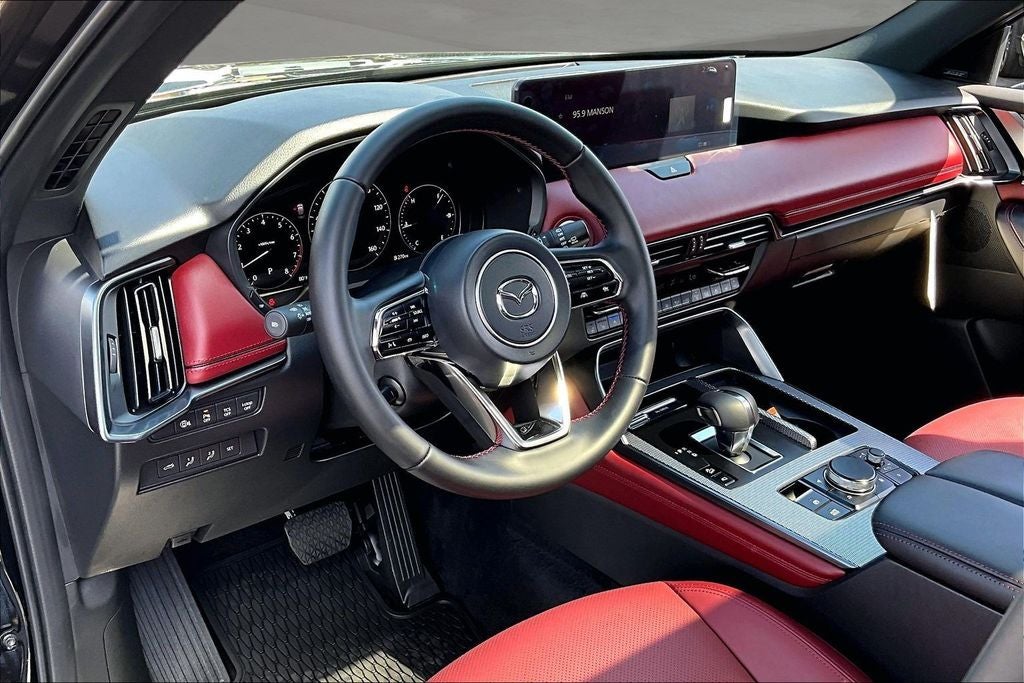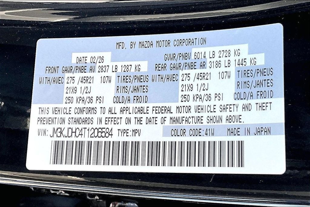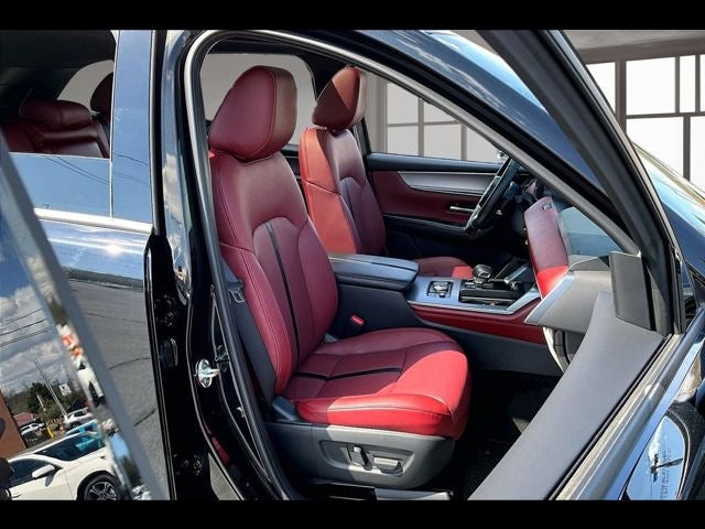 12 Speakers, 4-Wheel Disc Brakes, ABS brakes, Air Conditioning, Alloy wheels, AM/FM radio: SiriusXM, Auto High-beam Headlights, Auto-dimming door mirrors, Auto-dimming Rear-View mirror, Automatic temperature control, Black Lug Nuts and Black Wheel Locks, Brake assist, Bumpers: body-color, Compass, Delay-off headlights, Driver door bin, Driver vanity mirror, Dual front impact airbags, Dual front side impact airbags, E911 Automatic Emergency Notification, Electronic Stability Control, Emergency communication system: MAZDA CONNECT, Four wheel independent suspension, Front anti-roll bar, Front Bucket Seats, Front Center Armrest w/Storage, Front dual zone A/C, Front reading lights, Fully automatic headlights, Garage door transmitter: HomeLink, Heads-Up Display, Heated door mirrors, Heated front seats, Heated rear seats, Heated steering wheel, Heated/Ventilated Front Bucket Seats, Illuminated entry, Infotainment System Voice Command, Knee airbag, Leather Shift Knob, Leather steering wheel, Low tire pressure warning, Mazda Connected Services, Mazda Online Navigation, Memory seat, Nappa Leather Seat Trim, Navigation system: MAZDA CONNECT, Occupant sensing airbag, Outside temperature display, Overhead airbag, Overhead console, Panic alarm, Passenger door bin, Passenger vanity mirror, Power door mirrors, Power driver seat, Power Liftgate, Power moonroof, Power passenger seat, Power steering, Power windows, Premium Carpet Floor Mats, Radio Broadcast Data System Program Information, Radio data system, Radio: AM/FM with Bose Premium Audio Sound System, Rain sensing wipers, Rear air conditioning, Rear anti-roll bar, Rear reading lights, Rear seat center armrest, Rear window defroster, Rear window wiper, Remote keyless entry, Security system, SMS Text Message Audio Delivery and Reply, Speed control, Speed-sensing steering, Splash Guards, Split folding rear seat, Spoiler, Steering wheel memory, Steering wheel mounted audio controls, Tachometer, Telescoping steering wheel, Tilt steering wheel, Traction control, Trip computer, Turn signal indicator mirrors, Variably intermittent wipers, Ventilated front seats, and Wheels: 21 x 9.5J Aluminum Alloy.