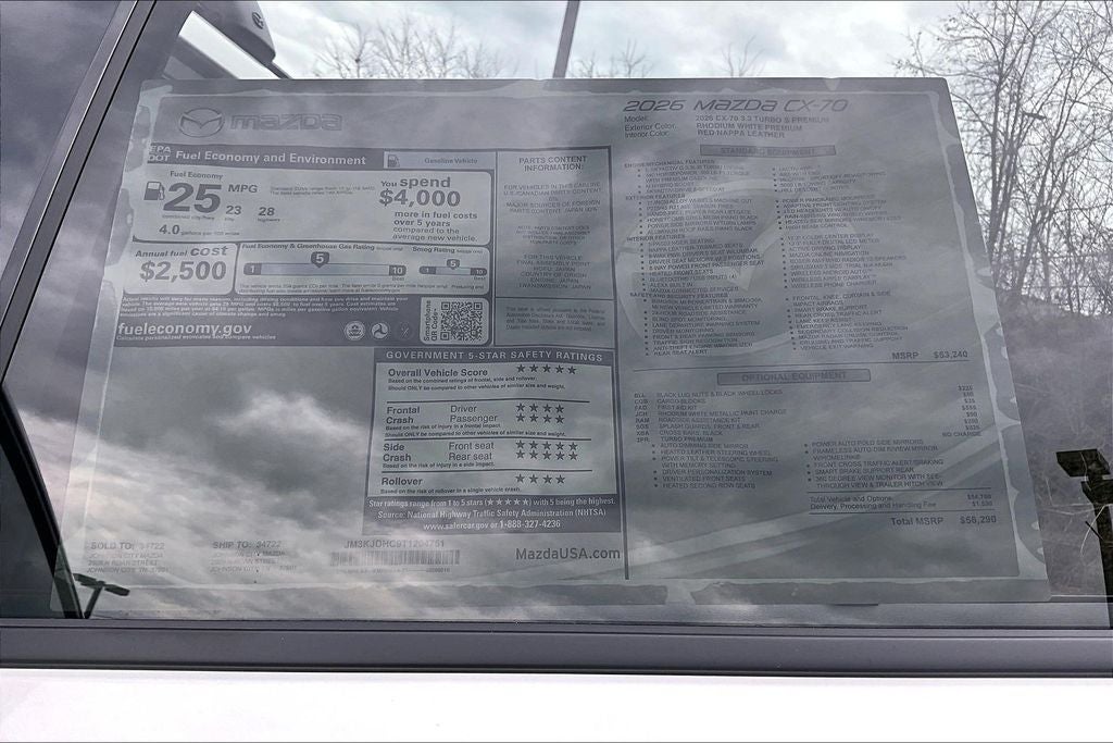 2026 Mazda CX-70 3.3 Turbo S Premium Rhodium White Premium 23/28 City/Highway MPG 4D Sport Utility AWD I6 Turbo 8-Speed Automatic