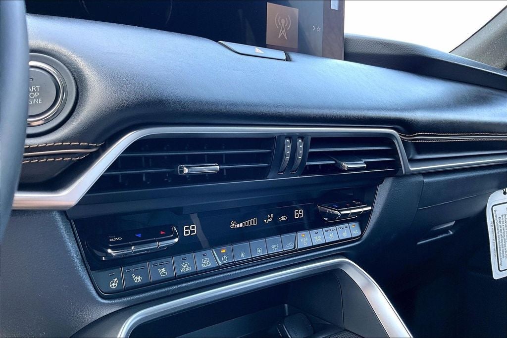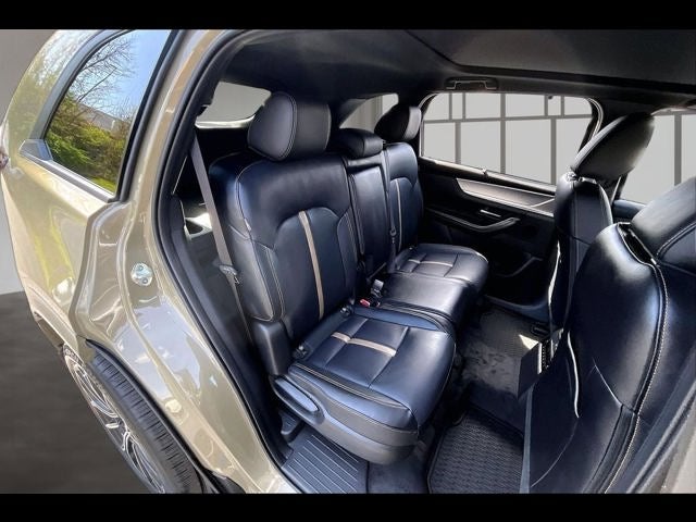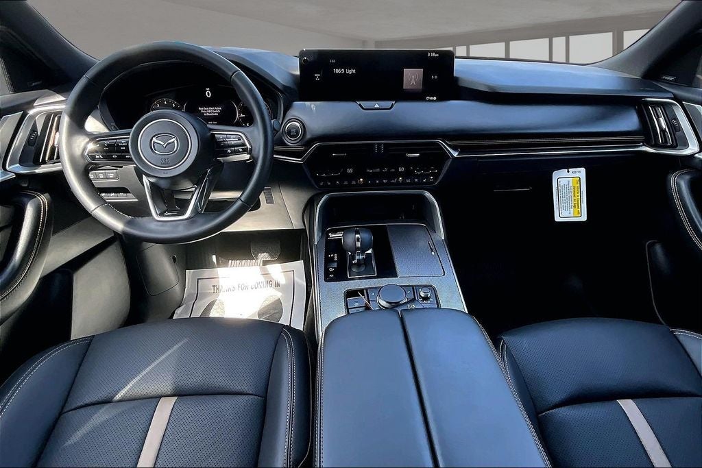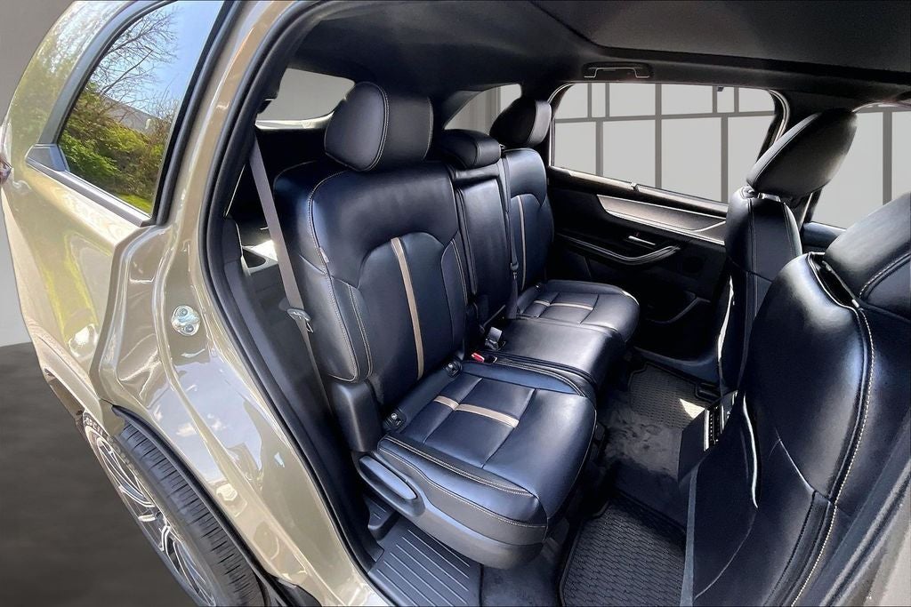 12 Speakers, 4-Wheel Disc Brakes, ABS brakes, Air Conditioning, Alloy wheels, AM/FM radio: SiriusXM, Auto High-beam Headlights, Auto-dimming door mirrors, Auto-dimming Rear-View mirror, Automatic temperature control, Black Lug Nuts and Black Wheel Locks, Brake assist, Bumpers: body-color, Compass, Delay-off headlights, Driver door bin, Driver vanity mirror, Dual front impact airbags, Dual front side impact airbags, E911 Automatic Emergency Notification, Electronic Stability Control, Emergency communication system: MAZDA CONNECT, Four wheel independent suspension, Front anti-roll bar, Front Bucket Seats, Front Center Armrest w/Storage, Front dual zone A/C, Front reading lights, Fully automatic headlights, Garage door transmitter: HomeLink, Heads-Up Display, Heated door mirrors, Heated front seats, Heated rear seats, Heated steering wheel, Heated/Ventilated Front Bucket Seats, Illuminated entry, Infotainment System Voice Command, Knee airbag, Leather Shift Knob, Leather steering wheel, Low tire pressure warning, Mazda Connected Services, Mazda Online Navigation, Memory seat, Nappa Leather Seat Trim, Navigation system: MAZDA CONNECT, Occupant sensing airbag, Outside temperature display, Overhead airbag, Overhead console, Panic alarm, Passenger door bin, Passenger vanity mirror, Power door mirrors, Power driver seat, Power Liftgate, Power moonroof, Power passenger seat, Power steering, Power windows, Premium Carpet Floor Mats, Radio Broadcast Data System Program Information, Radio data system, Radio: AM/FM with Bose Premium Audio Sound System, Rain sensing wipers, Rear air conditioning, Rear anti-roll bar, Rear reading lights, Rear seat center armrest, Rear window defroster, Rear window wiper, Remote keyless entry, Security system, SMS Text Message Audio Delivery and Reply, Speed control, Speed-sensing steering, Splash Guards, Split folding rear seat, Spoiler, Steering wheel memory, Steering wheel mounted audio controls, Tachometer, Telescoping steering wheel, Tilt steering wheel, Traction control, Trip computer, Turn signal indicator mirrors, Variably intermittent wipers, Ventilated front seats, Wheels: 21 x 9.5J Aluminum Alloy, and Zircon Sand Metallic Paint Charge.