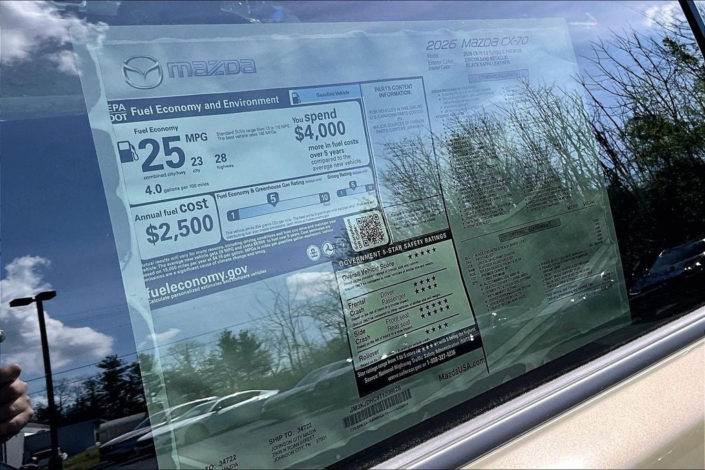 2026 Mazda CX-70 3.3 Turbo S Premium Zircon Sand Metallic 23/28 City/Highway MPG 4D Sport Utility AWD 3.3L I6 Turbocharged 8-Speed Automatic