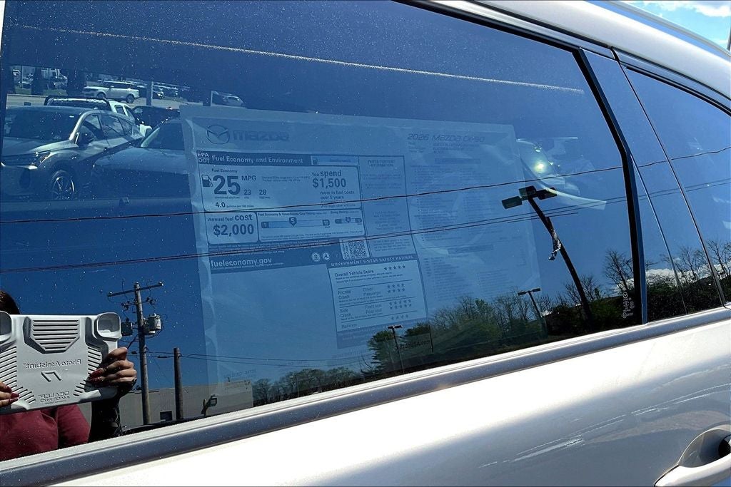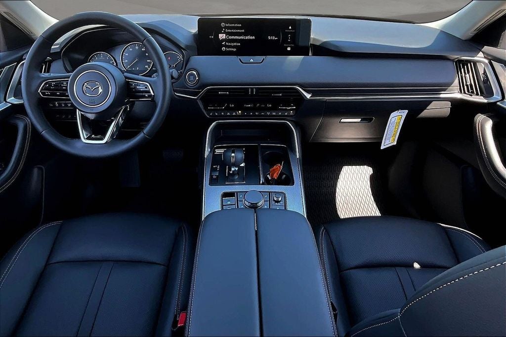 3rd row seats: bench, 4-Wheel Disc Brakes, 8 Speakers, ABS brakes, Air Conditioning, All Weather Floor Mats - Bench Seat, Alloy wheels, AM/FM radio, Auto High-beam Headlights, Automatic temperature control, Brake assist, Bumpers: body-color, Cargo Net, Compass, Delay-off headlights, Driver door bin, Driver vanity mirror, Dual front impact airbags, Dual front side impact airbags, E911 Automatic Emergency Notification, Electronic Stability Control, Emergency communication system: MAZDA CONNECT, Exterior Parking Camera Rear, Four wheel independent suspension, Front anti-roll bar, Front Bucket Seats, Front Center Armrest w/Storage, Front dual zone A/C, Front reading lights, Fully automatic headlights, Heated door mirrors, Heated front seats, Heated rear seats, Heated steering wheel, Heated/Ventilated Front Bucket Seats, Illuminated entry, Infotainment System Voice Command, Knee airbag, Leather Seat Trim, Leather Shift Knob, Leather steering wheel, Low tire pressure warning, Mazda Connected Services, Memory seat, Occupant sensing airbag, Outside temperature display, Overhead airbag, Overhead console, Panic alarm, Passenger door bin, Passenger vanity mirror, Power door mirrors, Power driver seat, Power Liftgate, Power moonroof, Power passenger seat, Power steering, Power windows, Radio Broadcast Data System Program Information, Radio data system, Radio: : AM/FM w/HD/8-Speaker Sound System, Rain sensing wipers, Rear air conditioning, Rear anti-roll bar, Rear reading lights, Rear seat center armrest, Rear window defroster, Rear window wiper, Remote keyless entry, SMS Text Msg Audio Delivery and Reply, Speed control, Speed-sensing steering, Split folding rear seat, Spoiler, Steering wheel mounted audio controls, Tachometer, Telescoping steering wheel, Tilt steering wheel, Traction control, Trip computer, Turn signal indicator mirrors, Variably intermittent wipers, Ventilated front seats, Wheel Locks, and Wheels: 21 x 9.5J Silver Metallic Aluminum Alloy.