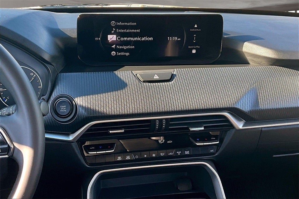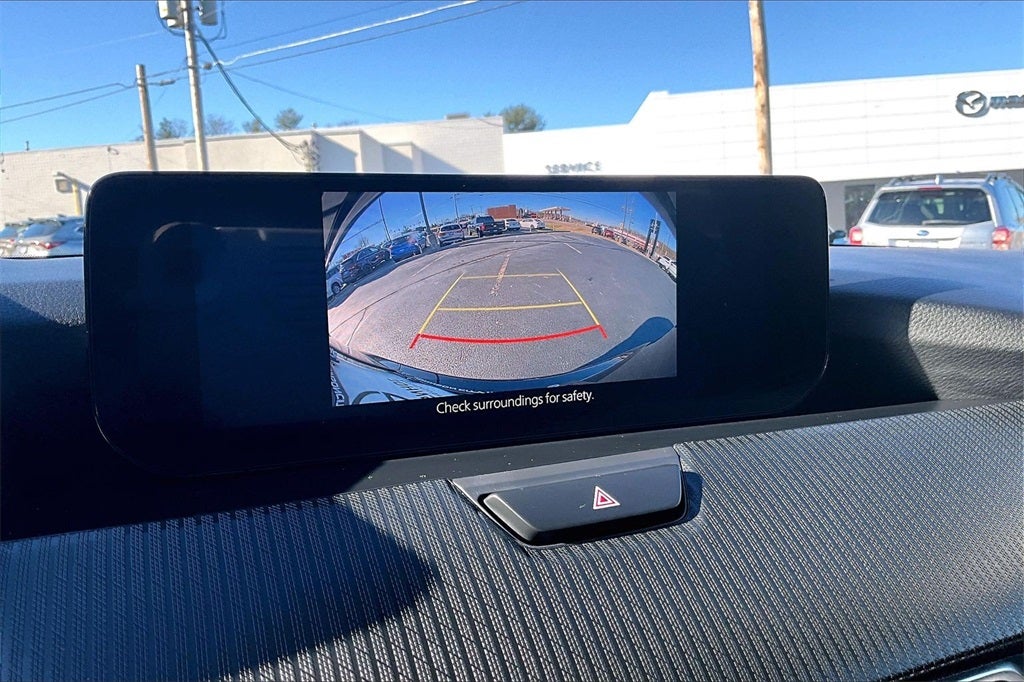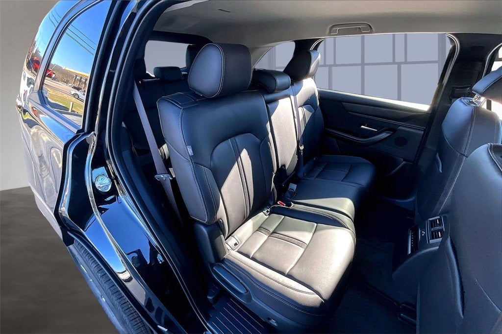 3rd row seats: bench, 4-Wheel Disc Brakes, 8 Speakers, ABS brakes, Air Conditioning, Alloy wheels, AM/FM radio, AppLink/Apple CarPlay and Android Auto, Auto High-beam Headlights, Automatic temperature control, Brake assist, Bumpers: body-color, Cargo Blocks, Compass, Delay-off headlights, Driver door bin, Driver vanity mirror, Dual front impact airbags, Dual front side impact airbags, E911 Automatic Emergency Notification, Electronic Stability Control, Emergency communication system: MAZDA CONNECT, Exterior Parking Camera Rear, Four wheel independent suspension, Front anti-roll bar, Front Bucket Seats, Front Center Armrest w/Storage, Front dual zone A/C, Front reading lights, Fully automatic headlights, Heated door mirrors, Illuminated entry, Infotainment System Voice Command, Knee airbag, Leather Shift Knob, Leather steering wheel, Leatherette Seat Trim, Low tire pressure warning, Mazda Connected Services, Occupant sensing airbag, Outside temperature display, Overhead airbag, Overhead console, Panic alarm, Passenger door bin, Passenger vanity mirror, Power door mirrors, Power driver seat, Power Liftgate, Power steering, Power windows, Radio Broadcast Data System Program Information, Radio data system, Radio: : AM/FM w/HD/8-Speaker Sound System, Rain sensing wipers, Rear air conditioning, Rear anti-roll bar, Rear reading lights, Rear seat center armrest, Rear window defroster, Rear window wiper, Remote keyless entry, SMS Text Msg Audio Delivery and Reply, Speed control, Speed-sensing steering, Split folding rear seat, Spoiler, Steering wheel mounted audio controls, Tachometer, Telescoping steering wheel, Tilt steering wheel, Traction control, Trip computer, Turn signal indicator mirrors, Variably intermittent wipers, Wheel Locks, and Wheels: 19 x 8.5J Aluminum Alloy with Silver Metallic Finish.