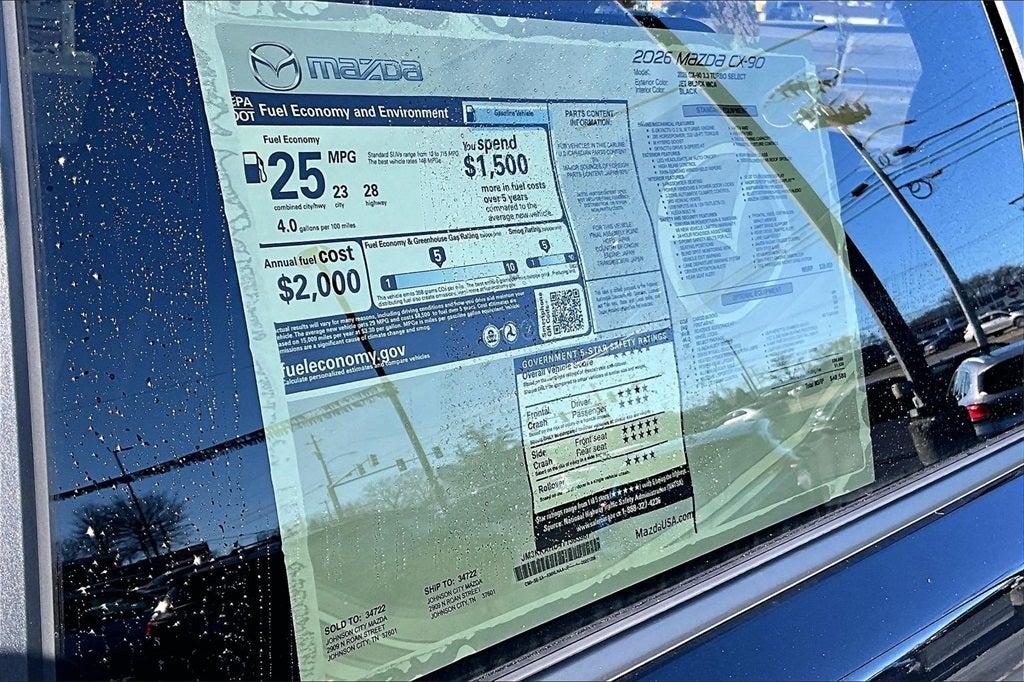 2026 Mazda CX-90 3.3 Turbo Select Jet Black Mica 23/28 City/Highway MPG 4D Sport Utility AWD I6 Turbo 8-Speed Automatic