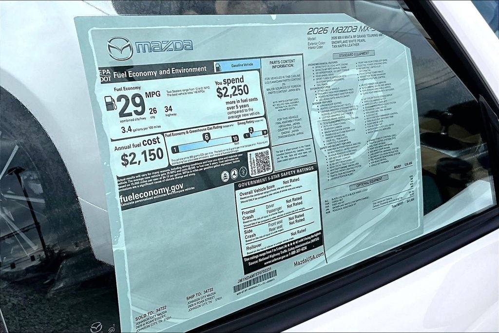 2026 Mazda MX-5 Miata RF Grand Touring Snowflake White Pearl Mica 26/34 City/Highway MPG 2D Convertible RWD 2.0L 4-Cylinder DOHC 16V 6-Speed Manual