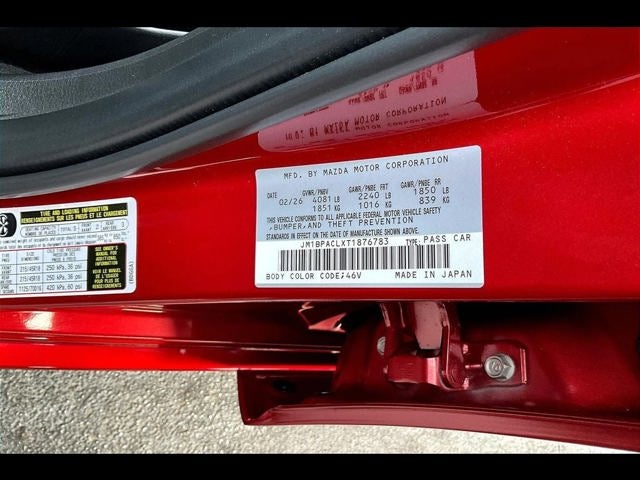 4-Wheel Disc Brakes, 8 Speakers, ABS brakes, Air Conditioning, Alloy wheels, AM/FM radio, AppLink/Apple CarPlay and Android Auto, Auto High-beam Headlights, Automatic temperature control, Brake assist, Bumpers: body-color, Compass, Delay-off headlights, Driver door bin, Driver vanity mirror, Dual front impact airbags, Dual front side impact airbags, Electronic Stability Control, Emergency communication system, Exterior Parking Camera Rear, Front anti-roll bar, Front Bucket Seats, Front Center Armrest, Front dual zone A/C, Front reading lights, Front wheel independent suspension, Fully automatic headlights, Heated door mirrors, Heated Front Bucket Seats, Heated front seats, High Wall All-Weather Floor Mats, Illuminated entry, Knee airbag, Leather Shift Knob, Leather steering wheel, Leatherette Seat Trim, Low tire pressure warning, MAZDA CONNECT Infotainment System, Memory seat, Occupant sensing airbag, Outside temperature display, Overhead airbag, Overhead console, Panic alarm, Passenger door bin, Passenger vanity mirror, Power door mirrors, Power driver seat, Power moonroof, Power steering, Power windows, Radio data system, Radio: AM/FM Audio System, Rain sensing wipers, Rear seat center armrest, Rear side impact airbag, Rear window defroster, Remote keyless entry, Soul Red Metallic Paint Charge, Speed control, Speed-sensing steering, Split folding rear seat, Steering wheel mounted audio controls, Tachometer, Telescoping steering wheel, Tilt steering wheel, Traction control, Trip computer, Turn signal indicator mirrors, Variably intermittent wipers, Wheel Locks, and Wheels: 18 x 7J Aluminum Alloy.