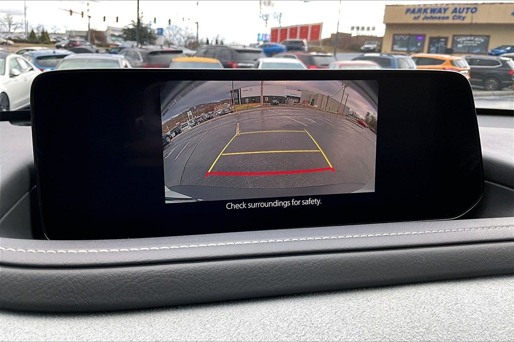 4-Wheel Disc Brakes, 8 Speakers, ABS brakes, Air Conditioning, Alloy wheels, AM/FM radio, AppLink/Apple CarPlay and Android Auto, Auto High-beam Headlights, Automatic temperature control, Black Lug Nuts & Black Wheel Locks, Brake assist, Bumpers: body-color, Cargo Tray, Compass, Delay-off headlights, Driver door bin, Driver vanity mirror, Dual front impact airbags, Dual front side impact airbags, Electronic Stability Control, Emergency communication system: MAZDA CONNECT, Exterior Parking Camera Rear, Front anti-roll bar, Front Bucket Seats, Front Center Armrest, Front dual zone A/C, Front reading lights, Front wheel independent suspension, Fully automatic headlights, Heated door mirrors, Heated Front Bucket Seats, Heated front seats, High Wall All-Weather Floor Mats, Illuminated entry, Knee airbag, Leather Shift Knob, Leather steering wheel, Leatherette Seat Trim w/Gray Cloth Inserts, Low tire pressure warning, MAZDA CONNECT Infotainment System, Memory seat, Occupant sensing airbag, Outside temperature display, Overhead airbag, Overhead console, Panic alarm, Passenger door bin, Passenger vanity mirror, Power door mirrors, Power driver seat, Power moonroof, Power steering, Power windows, Radio data system, Radio: AM/FM Audio System, Rain sensing wipers, Rear seat center armrest, Rear side impact airbag, Rear window defroster, Rear window wiper, Remote keyless entry, Snowflake White Pearl Mica Paint Charge, Speed control, Speed-sensing steering, Split folding rear seat, Spoiler, Steering wheel mounted audio controls, Tachometer, Telescoping steering wheel, Tilt steering wheel, Traction control, Trip computer, Turn signal indicator mirrors, Variably intermittent wipers, and Wheels: 18 x 7J Aluminum Alloy.