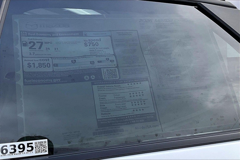 2026 Mazda CX-30 2.5 S Aire Edition Snowflake White Pearl Mica 24/31 City/Highway MPG 4D Sport Utility AWD SKYACTIV®-G 2.5L 4-Cylinder DOHC 16V 6-Speed Automatic