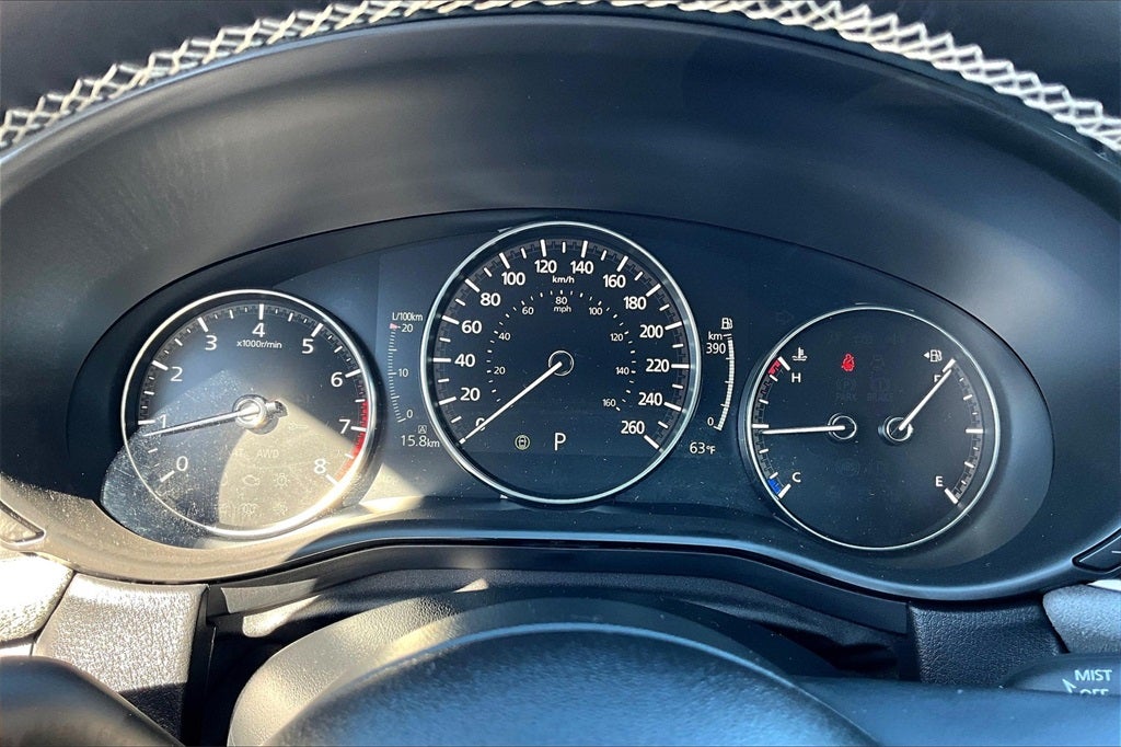 4-Wheel Disc Brakes, 8 Speakers, ABS brakes, Air Conditioning, Alloy wheels, AM/FM radio, AppLink/Apple CarPlay and Android Auto, Auto High-beam Headlights, Automatic temperature control, Black Lug Nuts & Black Wheel Locks, Brake assist, Bumpers: body-color, Cargo Tray, Compass, Delay-off headlights, Driver door bin, Driver vanity mirror, Dual front impact airbags, Dual front side impact airbags, Electronic Stability Control, Emergency communication system: MAZDA CONNECT, Exterior Parking Camera Rear, Front anti-roll bar, Front Bucket Seats, Front Center Armrest, Front dual zone A/C, Front reading lights, Front wheel independent suspension, Fully automatic headlights, Heated door mirrors, Heated Front Bucket Seats, Heated front seats, High Wall All-Weather Floor Mats, Illuminated entry, Knee airbag, Leather Shift Knob, Leather steering wheel, Low tire pressure warning, MAZDA CONNECT Infotainment System, Memory seat, Occupant sensing airbag, Outside temperature display, Overhead airbag, Overhead console, Panic alarm, Passenger door bin, Passenger vanity mirror, Power door mirrors, Power driver seat, Power moonroof, Power steering, Power windows, Radio data system, Radio: AM/FM Audio System, Rain sensing wipers, Rear seat center armrest, Rear side impact airbag, Rear window defroster, Rear window wiper, Remote keyless entry, Speed control, Speed-sensing steering, Split folding rear seat, Spoiler, Steering wheel mounted audio controls, Tachometer, Telescoping steering wheel, Tilt steering wheel, Traction control, Trip computer, Turn signal indicator mirrors, Variably intermittent wipers, and Wheels: 18 x 7J Aluminum Alloy.
