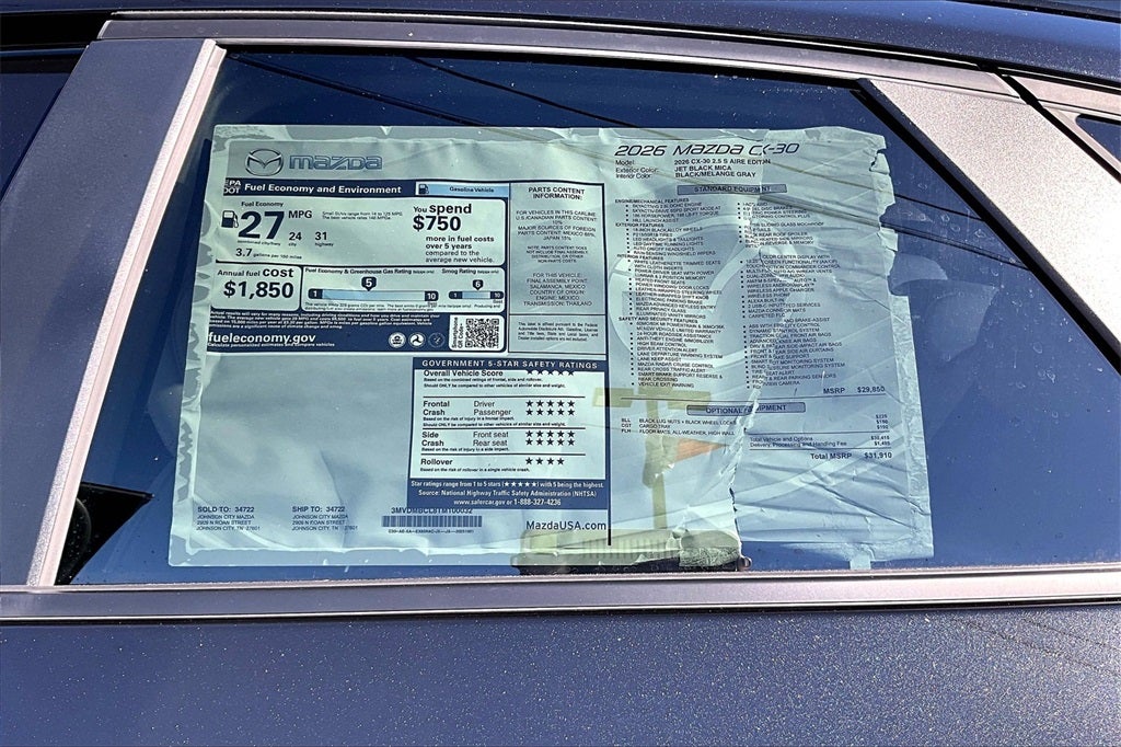2026 Mazda CX-30 2.5 S Aire Edition Jet Black Mica 24/31 City/Highway MPG 4D Sport Utility AWD SKYACTIV® 2.5L 4-Cylinder DOHC 16V 6-Speed Automatic