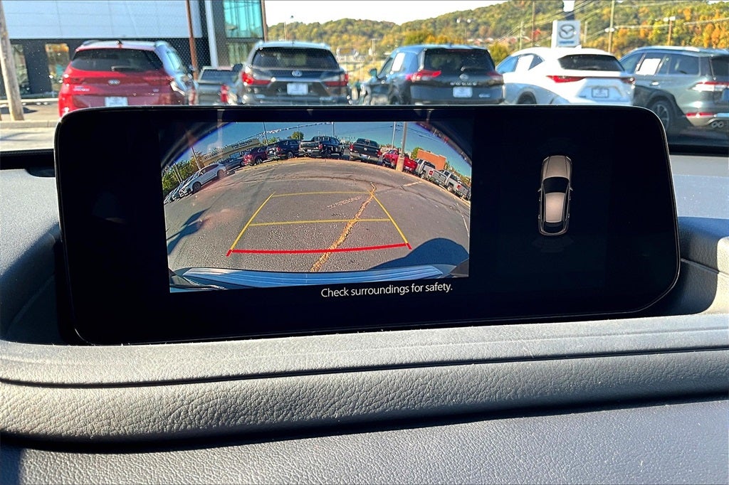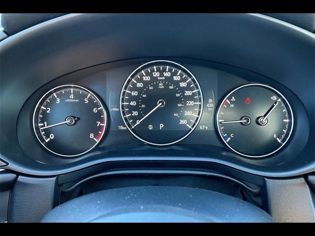 4-Wheel Disc Brakes, 8 Speakers, ABS brakes, Air Conditioning, Alloy wheels, AM/FM radio, AppLink/Apple CarPlay and Android Auto, Auto High-beam Headlights, Automatic temperature control, Brake assist, Bumpers: body-color, Cargo Tray, Compass, Delay-off headlights, Driver door bin, Driver vanity mirror, Dual front impact airbags, Dual front side impact airbags, Electronic Stability Control, Emergency communication system: MAZDA CONNECT, Exterior Parking Camera Rear, Front anti-roll bar, Front Bucket Seats, Front Center Armrest, Front dual zone A/C, Front reading lights, Front wheel independent suspension, Fully automatic headlights, Heated door mirrors, Heated Front Bucket Seats, Heated front seats, High Wall All-Weather Floor Mats, Illuminated entry, Knee airbag, Leather Shift Knob, Leather steering wheel, Leatherette Seat Trim, Low tire pressure warning, MAZDA CONNECT Infotainment System, Memory seat, Occupant sensing airbag, Outside temperature display, Overhead airbag, Overhead console, Panic alarm, Passenger door bin, Passenger vanity mirror, Power door mirrors, Power driver seat, Power moonroof, Power steering, Power windows, Radio data system, Radio: AM/FM Audio System, Rain sensing wipers, Rear seat center armrest, Rear side impact airbag, Rear window defroster, Rear window wiper, Remote keyless entry, Speed control, Speed-sensing steering, Split folding rear seat, Spoiler, Stainless Steel Rear Bumper Guard, Steering wheel mounted audio controls, Tachometer, Telescoping steering wheel, Tilt steering wheel, Traction control, Trip computer, Turn signal indicator mirrors, Variably intermittent wipers, Wheel Locks, and Wheels: 18 x 7J Aluminum Alloy.