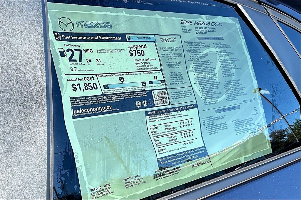 2026 Mazda CX-30 2.5 S Preferred Deep Crystal Blue Mica 24/31 City/Highway MPG 4D Sport Utility AWD SKYACTIV® 2.5L 4-Cylinder DOHC 16V 6-Speed Automatic