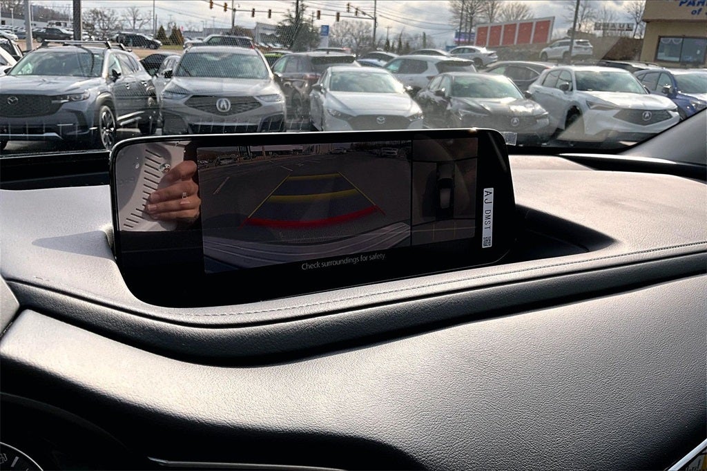 12 Speakers, 4-Wheel Disc Brakes, ABS brakes, Air Conditioning, Alloy wheels, AM/FM radio, AppLink/Apple CarPlay and Android Auto, Auto High-beam Headlights, Auto-dimming Rear-View mirror, Automatic temperature control, Brake assist, Bumpers: body-color, Cargo Cover, Cargo Tray, Compass, Delay-off headlights, Driver door bin, Driver vanity mirror, Dual front impact airbags, Dual front side impact airbags, Electronic Stability Control, Emergency communication system: MAZDA CONNECT, Exterior Parking Camera Rear, Front anti-roll bar, Front Bucket Seats, Front Center Armrest, Front dual zone A/C, Front reading lights, Front wheel independent suspension, Fully automatic headlights, Garage door transmitter: HomeLink, Heads-Up Display, Heated door mirrors, Heated Front Bucket Seats, Heated front seats, Heated steering wheel, High Wall All-Weather Floor Mats, Illuminated entry, Knee airbag, Leather Seat Trim, Leather Shift Knob, Leather steering wheel, Low tire pressure warning, MAZDA CONNECT Infotainment System, Memory seat, Occupant sensing airbag, Outside temperature display, Overhead airbag, Overhead console, Panic alarm, Passenger door bin, Passenger vanity mirror, Power door mirrors, Power driver seat, Power Liftgate, Power moonroof, Power steering, Power windows, Radio data system, Radio: AM/FM/HD Audio System, Rain sensing wipers, Rear seat center armrest, Rear side impact airbag, Rear window defroster, Rear window wiper, Remote keyless entry, Speed control, Speed-sensing steering, Split folding rear seat, Spoiler, Stainless Steel Rear Bumper Guard, Steering wheel mounted audio controls, Tachometer, Telescoping steering wheel, Tilt steering wheel, Traction control, Trip computer, Turn signal indicator mirrors, Variably intermittent wipers, Wheel Locks, and Wheels: 18 x 7J Aluminum Alloy.