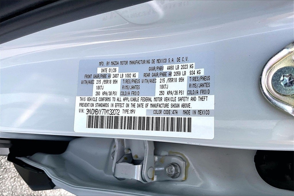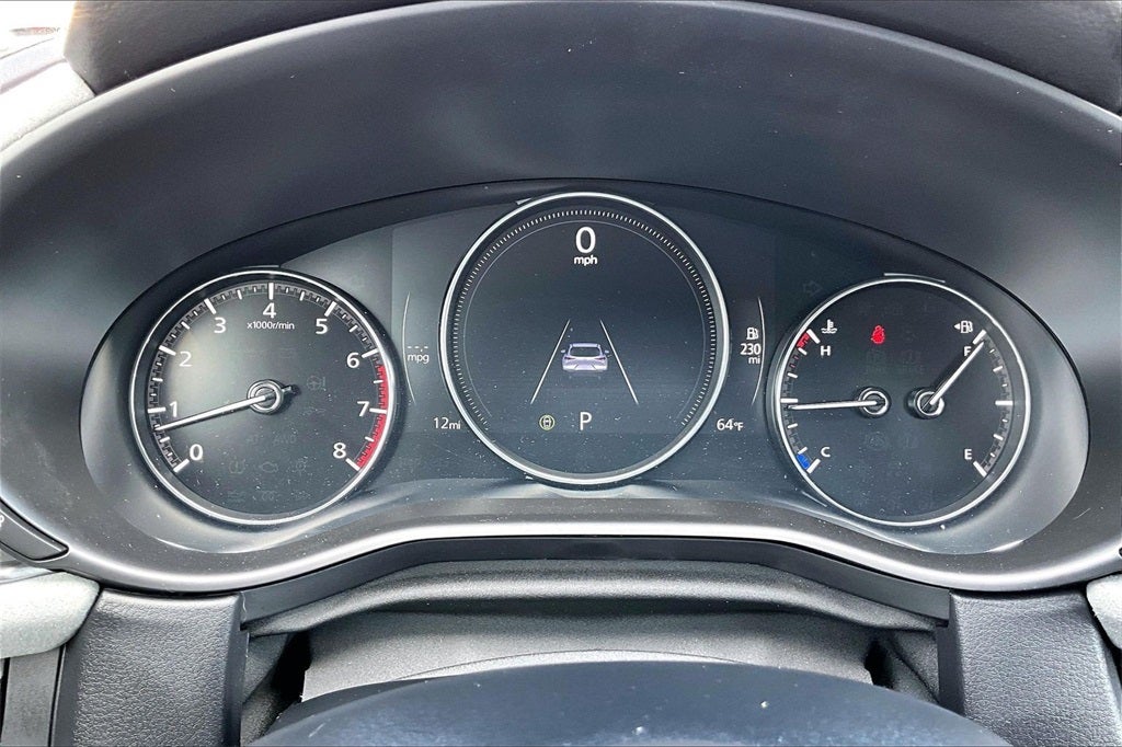 12 Speakers, 4-Wheel Disc Brakes, ABS brakes, Air Conditioning, Alloy wheels, AM/FM radio, AppLink/Apple CarPlay and Android Auto, Auto High-beam Headlights, Auto-dimming Rear-View mirror, Automatic temperature control, Black Lug Nuts & Black Wheel Locks, Brake assist, Bumpers: body-color, Cargo Cover, Cargo Net, Cargo Tray, Ceramic Metallic Paint Charge, Compass, Delay-off headlights, Driver door bin, Driver vanity mirror, Dual front impact airbags, Dual front side impact airbags, Electronic Stability Control, Emergency communication system: MAZDA CONNECT, Exterior Parking Camera Rear, Front anti-roll bar, Front Bucket Seats, Front Center Armrest, Front dual zone A/C, Front reading lights, Front wheel independent suspension, Fully automatic headlights, Garage door transmitter: HomeLink, Heads-Up Display, Heated door mirrors, Heated Front Bucket Seats, Heated front seats, Illuminated entry, Knee airbag, Leather Shift Knob, Leather steering wheel, Leatherette Seat Trim, Low tire pressure warning, MAZDA CONNECT Infotainment System, Memory seat, Occupant sensing airbag, Outside temperature display, Overhead airbag, Overhead console, Panic alarm, Passenger door bin, Passenger vanity mirror, Power door mirrors, Power driver seat, Power Liftgate, Power moonroof, Power steering, Power windows, Radio data system, Radio: AM/FM/HD Audio System, Rain sensing wipers, Rear seat center armrest, Rear side impact airbag, Rear window defroster, Rear window wiper, Remote keyless entry, Speed control, Speed-sensing steering, Split folding rear seat, Spoiler, Steering wheel mounted audio controls, Tachometer, Telescoping steering wheel, Tilt steering wheel, Traction control, Trip computer, Turn signal indicator mirrors, Variably intermittent wipers, and Wheels: 18 x 7J Aluminum Alloy.