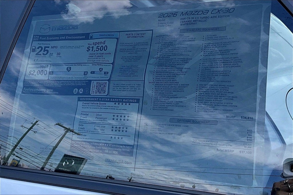 2026 Mazda CX-30 2.5 Turbo Aire Edition Ceramic Metallic 22/30 City/Highway MPG 4D Sport Utility AWD 2.5L I4 6-Speed Automatic