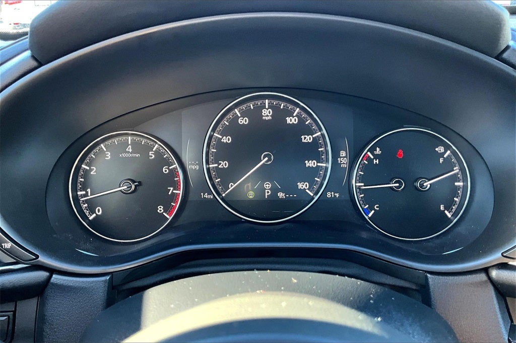 12 Speakers, 4-Wheel Disc Brakes, ABS brakes, Aero Gray Paint Charge, Air Conditioning, Alloy wheels, AM/FM radio: SiriusXM, AppLink/Apple CarPlay and Android Auto, Auto High-beam Headlights, Auto-dimming door mirrors, Auto-dimming Rear-View mirror, Automatic temperature control, Black Lug Nuts & Black Wheel Locks, Brake assist, Bumpers: body-color, Compass, Delay-off headlights, Driver door bin, Driver vanity mirror, Dual front impact airbags, Dual front side impact airbags, Electronic Stability Control, Emergency communication system: MAZDA CONNECT, Exterior Parking Camera Rear, Front anti-roll bar, Front Bucket Seats, Front Center Armrest, Front dual zone A/C, Front Illuminated Door Sill Trim Plates, Front reading lights, Front wheel independent suspension, Fully automatic headlights, Garage door transmitter: HomeLink, Heads-Up Display, Heated door mirrors, Heated Front Bucket Seats, Heated front seats, Heated steering wheel, Illuminated entry, Knee airbag, Leather Seat Trim, Leather Shift Knob, Leather steering wheel, Low tire pressure warning, MAZDA CONNECT Infotainment System, Memory seat, Occupant sensing airbag, Outside temperature display, Overhead airbag, Overhead console, Panic alarm, Passenger door bin, Passenger vanity mirror, Power door mirrors, Power driver seat, Power Liftgate, Power moonroof, Power steering, Power windows, Radio data system, Radio: AM/FM/HD Audio System, Rain sensing wipers, Rear seat center armrest, Rear side impact airbag, Rear window defroster, Rear window wiper, Remote keyless entry, Speed control, Speed-sensing steering, Split folding rear seat, Spoiler, Steering wheel mounted audio controls, Tachometer, Telescoping steering wheel, Tilt steering wheel, Traction control, Trip computer, Turn signal indicator mirrors, Variably intermittent wipers, and Wheels: 18 x 7J Aluminum Alloy.