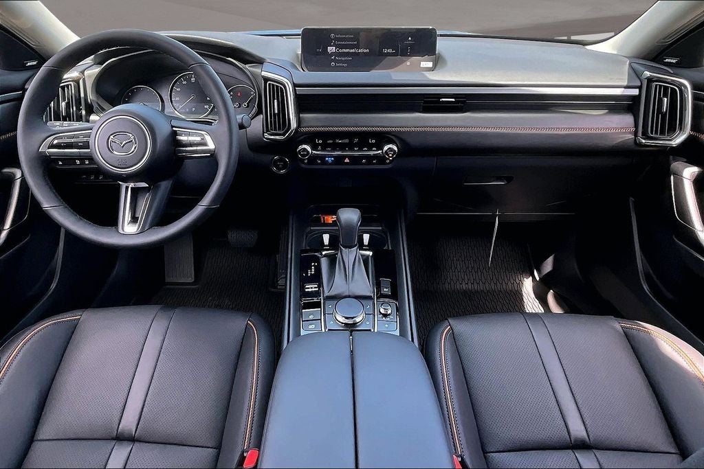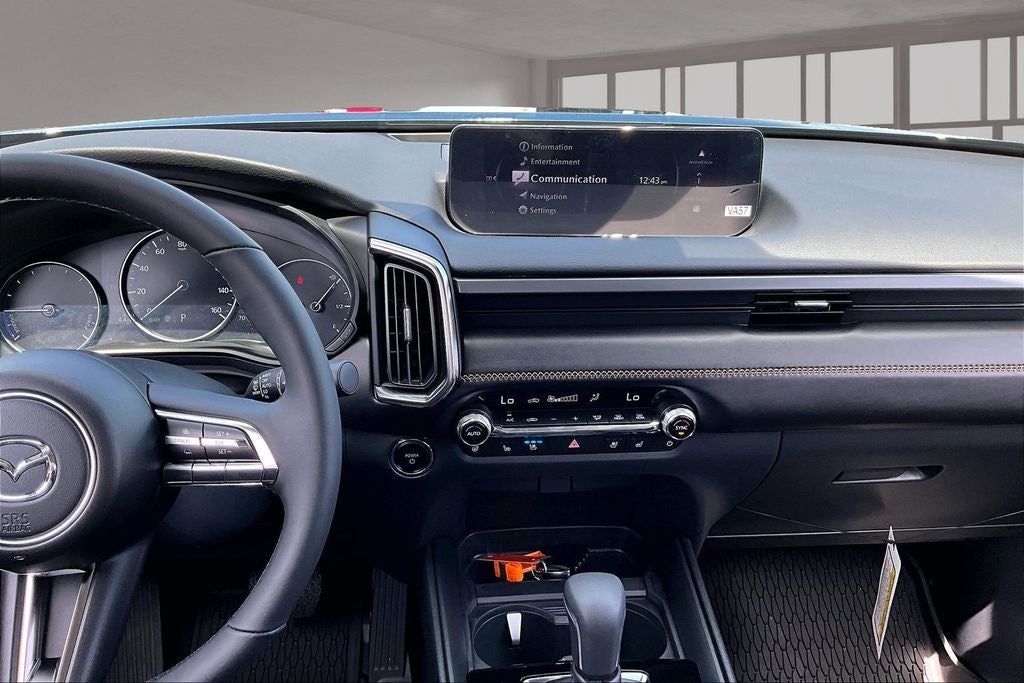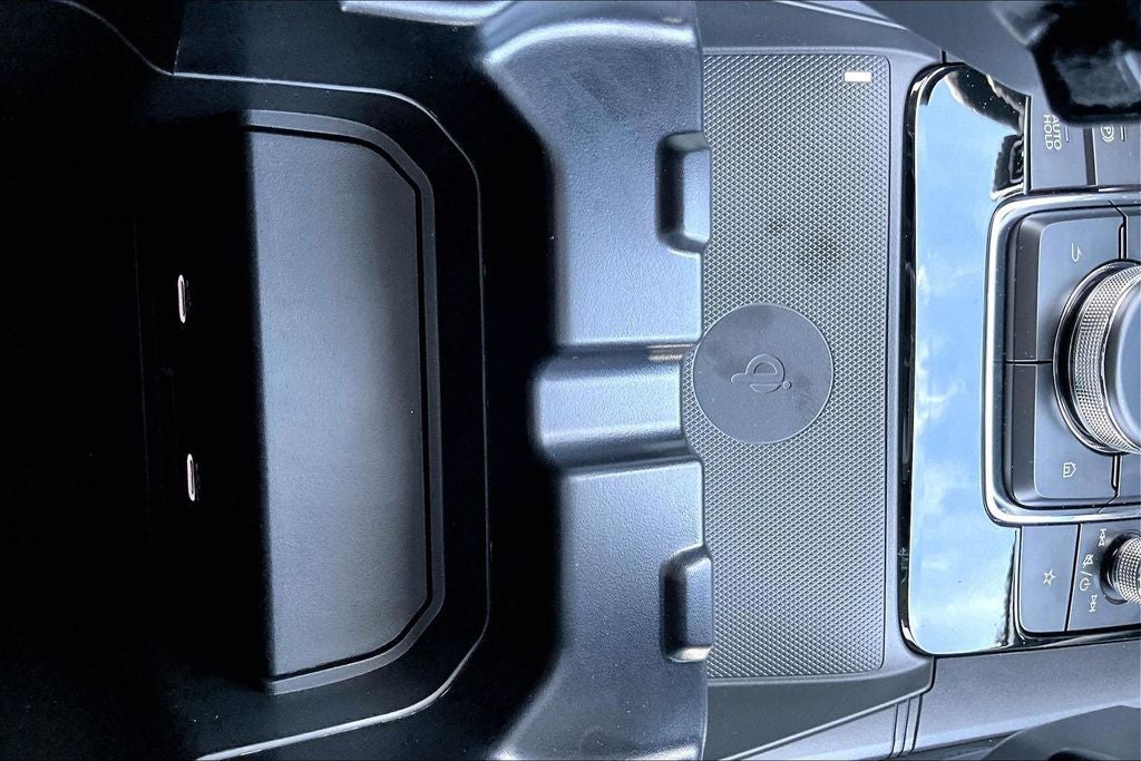 Weather Package (Cargo Liner w/Seatback Protection), 12 Speakers, 4-Wheel Disc Brakes, ABS brakes, Air Conditioning, Alloy wheels, AM/FM radio: SiriusXM, AppLink/Apple CarPlay and Android Auto, Auto High-beam Headlights, Auto-dimming Rear-View mirror, Automatic temperature control, Black Lug Nuts & Black Wheel Locks, Brake assist, Bumpers: body-color, Delay-off headlights, Driver door bin, Driver vanity mirror, Dual front impact airbags, Dual front side impact airbags, Electronic Stability Control, Emergency communication system: MAZDA CONNECT, Exterior Parking Camera Rear, Front anti-roll bar, Front Bucket Seats, Front Center Armrest, Front dual zone A/C, Front reading lights, Front wheel independent suspension, Fully automatic headlights, Garage door transmitter: HomeLink, Heads-Up Display, Heated door mirrors, Heated front seats, Heated rear seats, Heated steering wheel, Heated/Ventilated Front Seats w/3 Level Adjustment, Illuminated entry, Knee airbag, Leather Seat Trim, Leather Shift Knob, Leather steering wheel, Low tire pressure warning, Memory seat, Occupant sensing airbag, Outside temperature display, Overhead airbag, Overhead console, Panic alarm, Passenger door bin, Passenger vanity mirror, Power door mirrors, Power driver seat, Power Liftgate, Power moonroof, Power passenger seat, Power steering, Power windows, Radio data system, Radio: AM/FM/HD Bose 12-Speaker Audio Sound System, Rain sensing wipers, Rear seat center armrest, Rear window defroster, Rear window wiper, Remote keyless entry, Speed control, Speed-sensing steering, Split folding rear seat, Spoiler, Steering wheel mounted audio controls, Tachometer, Telescoping steering wheel, Tilt steering wheel, Traction control, Trip computer, Turn signal indicator mirrors, Variably intermittent wipers, Ventilated front seats, and Wheels: 19 x 7.5J Aluminum Alloy Black Metallic w/Machine Cut.