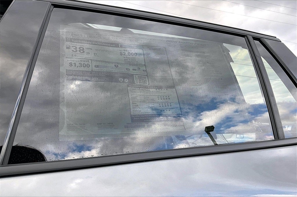 Weather Package, 12 Speakers, 4-Wheel Disc Brakes, ABS brakes, Air Conditioning, Alloy wheels, AM/FM radio: SiriusXM, AppLink/Apple CarPlay and Android Auto, Auto High-beam Headlights, Auto-dimming Rear-View mirror, Automatic temperature control, Black Lug Nuts and Black Wheel Locks, Brake assist, Bumpers: body-color, Delay-off headlights, Driver door bin, Driver vanity mirror, Dual front impact airbags, Dual front side impact airbags, Electronic Stability Control, Emergency communication system: MAZDA CONNECT, Exterior Parking Camera Rear, Front anti-roll bar, Front Bucket Seats, Front Center Armrest, Front dual zone A/C, Front reading lights, Front wheel independent suspension, Fully automatic headlights, Garage door transmitter: HomeLink, Heads-Up Display, Heated and Ventilated Front Seats with 3 Level Adjustment, Heated door mirrors, Heated front seats, Heated rear seats, Heated steering wheel, Illuminated entry, Knee airbag, Leather Seat Trim, Leather Shift Knob, Leather steering wheel, Low tire pressure warning, Machine Gray Metallic Paint Charge, Memory seat, Occupant sensing airbag, Outside temperature display, Overhead airbag, Overhead console, Panic alarm, Passenger door bin, Passenger vanity mirror, Power door mirrors, Power driver seat, Power Liftgate, Power moonroof, Power passenger seat, Power steering, Power windows, Radio data system, Radio: AM/FM/HD Bose 12-Speaker Audio Sound System, Rain sensing wipers, Rear seat center armrest, Rear window defroster, Rear window wiper, Remote keyless entry, Speed control, Speed-sensing steering, Split folding rear seat, Spoiler, Steering wheel mounted audio controls, Tachometer, Telescoping steering wheel, Tilt steering wheel, Traction control, Trip computer, Turn signal indicator mirrors, Variably intermittent wipers, Ventilated front seats, and Wheels: 19 x 7.5J Aluminum Alloy Black Metallic with Machine Cut.