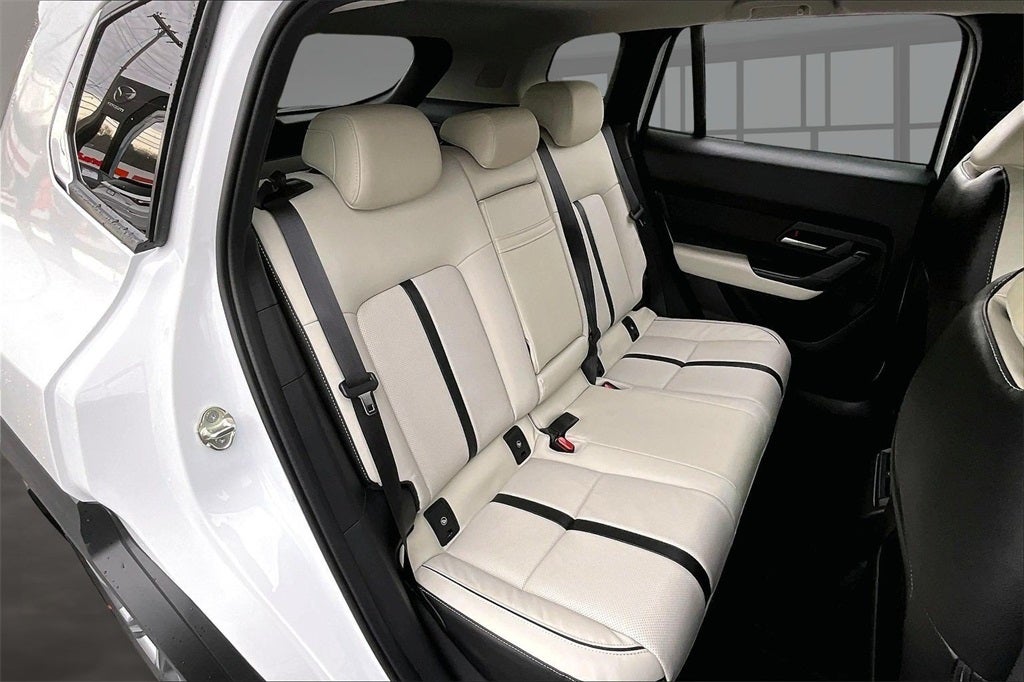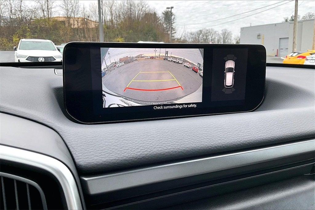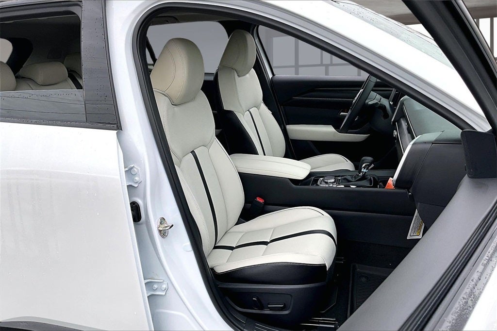 Weather Package, 12 Speakers, 4-Wheel Disc Brakes, ABS brakes, Air Conditioning, Alloy wheels, AM/FM radio: SiriusXM, AppLink/Apple CarPlay and Android Auto, Auto High-beam Headlights, Auto-dimming Rear-View mirror, Automatic temperature control, Brake assist, Bumpers: body-color, Delay-off headlights, Driver door bin, Driver vanity mirror, Dual front impact airbags, Dual front side impact airbags, Electronic Stability Control, Emergency communication system: MAZDA CONNECT, Exterior Parking Camera Rear, Front anti-roll bar, Front Bucket Seats, Front Center Armrest, Front dual zone A/C, Front reading lights, Front wheel independent suspension, Fully automatic headlights, Heated and Ventilated Front Seats with 3 Level Adjustment, Heated door mirrors, Heated front seats, Illuminated entry, Knee airbag, Leather Seat Trim, Leather Shift Knob, Leather steering wheel, Low tire pressure warning, Memory seat, Occupant sensing airbag, Outside temperature display, Overhead airbag, Overhead console, Panic alarm, Passenger door bin, Passenger vanity mirror, Power door mirrors, Power driver seat, Power Liftgate, Power moonroof, Power passenger seat, Power steering, Power windows, Radio data system, Radio: AM/FM/HD Bose 12-Speaker Audio Sound System, Rain sensing wipers, Rear seat center armrest, Rear window defroster, Rear window wiper, Remote keyless entry, Silver Cross Bars, Speed control, Speed-sensing steering, Split folding rear seat, Spoiler, Steering wheel mounted audio controls, Tachometer, Telescoping steering wheel, Tilt steering wheel, Traction control, Trip computer, Turn signal indicator mirrors, Variably intermittent wipers, Ventilated front seats, Wheels: 20 x 8J Aluminum Alloy Black Metallic with Machining Cut, and Wind Chill Pearl and White Interior.