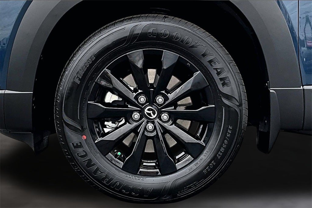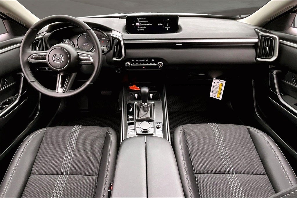 Weather Package, 4-Wheel Disc Brakes, 8 Speakers, ABS brakes, Air Conditioning, Alloy wheels, AM/FM radio, AppLink/Apple CarPlay and Android Auto, Auto High-beam Headlights, Automatic temperature control, Black Lug Nuts and Black Wheel Locks, Brake assist, Bumpers: body-color, Delay-off headlights, Driver door bin, Driver vanity mirror, Dual front impact airbags, Dual front side impact airbags, Electronic Stability Control, Emergency communication system: MAZDA CONNECT, Exterior Parking Camera Rear, Front and Rear Splash Guards, Front anti-roll bar, Front Bucket Seats, Front Center Armrest, Front dual zone A/C, Front reading lights, Front wheel independent suspension, Fully automatic headlights, Half Leatherette Seat Trim, Illuminated entry, Knee airbag, Leather Shift Knob, Leather steering wheel, Low tire pressure warning, Occupant sensing airbag, Outside temperature display, Overhead airbag, Overhead console, Panic alarm, Passenger door bin, Passenger vanity mirror, Power door mirrors, Power steering, Power windows, Radio data system, Radio: AM/FM/HD 8-Speaker Audio Sound System, Rain sensing wipers, Rear seat center armrest, Rear window defroster, Rear window wiper, Remote keyless entry, Speed control, Speed-sensing steering, Split folding rear seat, Spoiler, Steering wheel mounted audio controls, Tachometer, Telescoping steering wheel, Tilt steering wheel, Traction control, Trip computer, Turn signal indicator mirrors, Variably intermittent wipers, and Wheels: 17 x 7J Aluminum Alloy Black Metallic Finish.