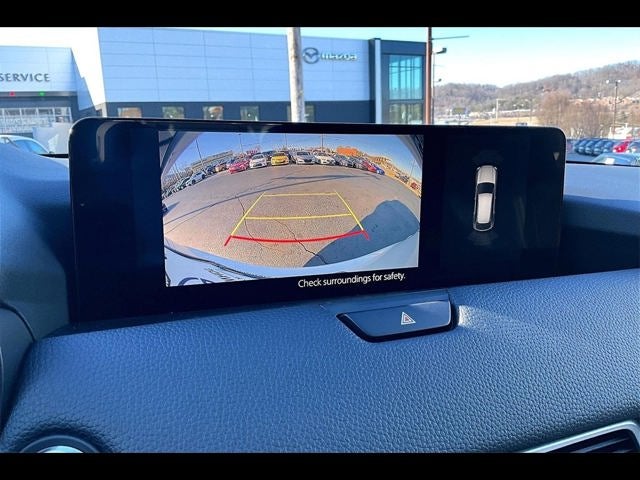 4-Wheel Disc Brakes, 8 Speakers, ABS brakes, Air Conditioning, Alloy wheels, AM/FM radio, AppLink/Apple CarPlay and Android Auto, Auto High-beam Headlights, Automatic temperature control, Brake assist, Bumpers: body-color, Cargo Blocks, Cargo Net, Compass, Delay-off headlights, Driver door bin, Driver vanity mirror, Dual front impact airbags, Dual front side impact airbags, E911 Automatic Emergency Notification, Electronic Stability Control, Emergency communication system: MAZDA CONNECT, Exterior Parking Camera Rear, Four wheel independent suspension, Front anti-roll bar, Front Bucket Seats, Front Center Armrest w/Storage, Front dual zone A/C, Front reading lights, Fully automatic headlights, Heated door mirrors, Heated front seats, Heated rear seats, Heated steering wheel, Heated/Ventilated Front Bucket Seats, Illuminated entry, Infotainment System Voice Command, Knee airbag, Leather Seat Trim, Leather Shift Knob, Leather steering wheel, Low tire pressure warning, Mazda Connected Services, Memory seat, Occupant sensing airbag, Outside temperature display, Overhead airbag, Overhead console, Panic alarm, Passenger door bin, Passenger vanity mirror, Power door mirrors, Power driver seat, Power Liftgate, Power moonroof, Power passenger seat, Power steering, Power windows, Radio Broadcast Data System Program Information, Radio data system, Radio: AM/FM Sound System, Rain sensing wipers, Rear air conditioning, Rear anti-roll bar, Rear reading lights, Rear seat center armrest, Rear window defroster, Rear window wiper, Remote keyless entry, Rhodium White Premium Paint Charge, SMS Text Message Audio Delivery and Reply, Speed control, Speed-sensing steering, Split folding rear seat, Spoiler, Steering wheel mounted audio controls, Tachometer, Telescoping steering wheel, Tilt steering wheel, Traction control, Trip computer, Variably intermittent wipers, Ventilated front seats, Wheel Locks, and Wheels: 21 x 9.5J Aluminum Alloy.