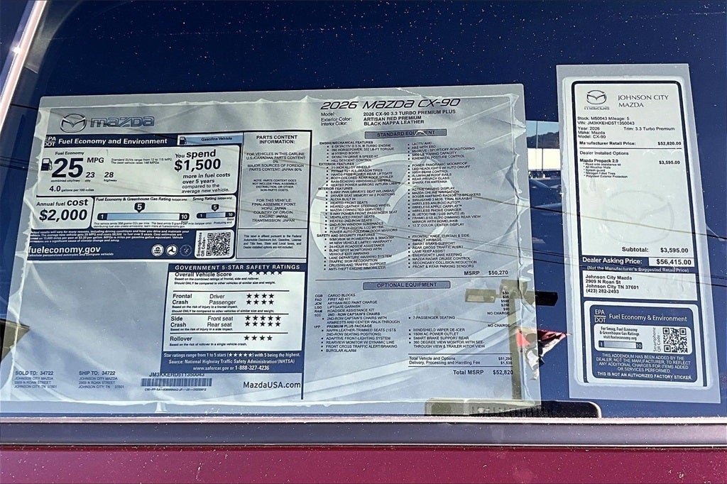 2026 Mazda CX-90 3.3 Turbo Premium Plus Artisan Red Premium 23/28 City/Highway MPG 4D Sport Utility AWD I6 Turbo 8-Speed Automatic
