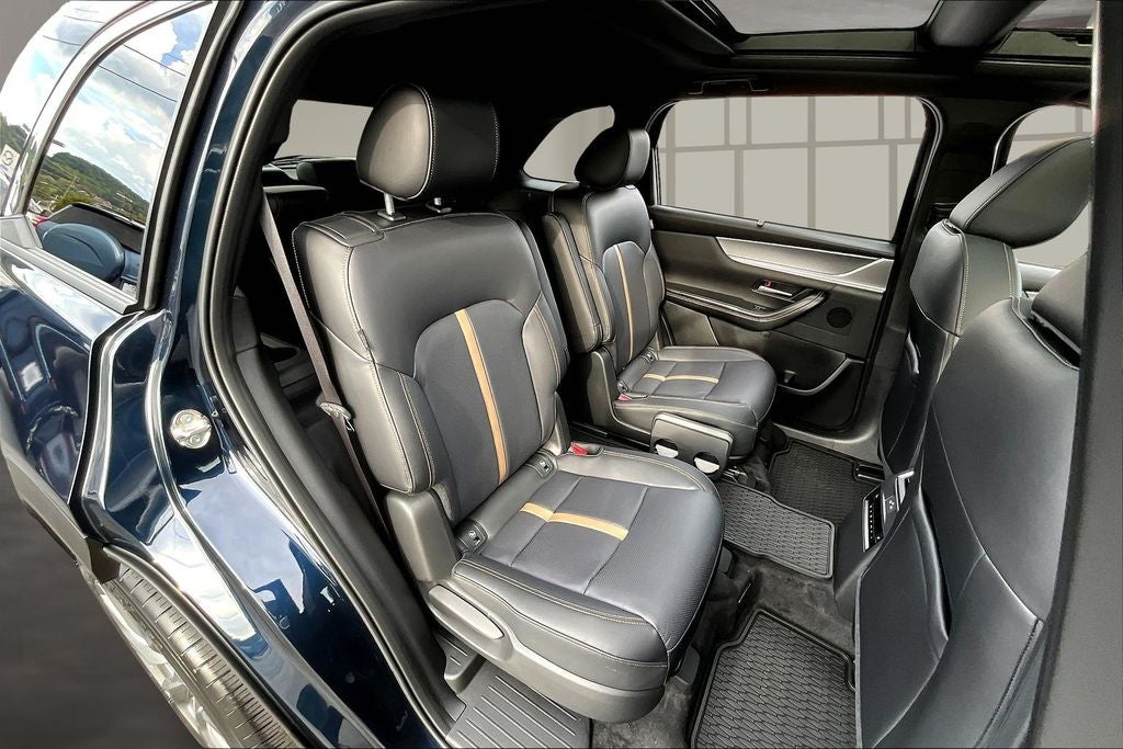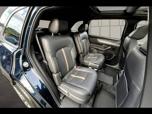 12 Speakers, 2nd-Row Captain's Chairs, 3rd row seats: bench, 4-Wheel Disc Brakes, ABS brakes, Air Conditioning, Alloy wheels, AM/FM radio: SiriusXM, Auto High-beam Headlights, Auto-dimming door mirrors, Automatic temperature control, Brake assist, Bumpers: body-color, Compass, Delay-off headlights, Driver door bin, Driver vanity mirror, Dual front impact airbags, Dual front side impact airbags, E911 Automatic Emergency Notification, Electronic Stability Control, Emergency communication system: MAZDA CONNECT, Four wheel independent suspension, Front anti-roll bar, Front Bucket Seats, Front Center Armrest w/Storage, Front dual zone A/C, Front reading lights, Fully automatic headlights, Garage door transmitter: HomeLink, Heads-Up Display, Heated door mirrors, Heated front seats, Heated rear seats, Heated steering wheel, Heated/Ventilated Front Bucket Seats, Illuminated entry, Infotainment System Voice Command, Knee airbag, Leather Shift Knob, Leather steering wheel, Low tire pressure warning, Mazda Connected Services, Mazda Online Navigation, Memory seat, Nappa Leather Seat Trim, Navigation system: MAZDA CONNECT, Occupant sensing airbag, Outside temperature display, Overhead airbag, Overhead console, Panic alarm, Passenger door bin, Passenger vanity mirror, Power door mirrors, Power driver seat, Power Liftgate, Power moonroof, Power passenger seat, Power steering, Power windows, Radio Broadcast Data System Program Information, Radio data system, Radio: : AM/FM w/HD/Bose 12-Speaker Sound System, Rain sensing wipers, Rear air conditioning, Rear anti-roll bar, Rear reading lights, Rear seat center armrest, Rear window defroster, Rear window wiper, Remote keyless entry, Security system, SMS Text Msg Audio Delivery and Reply, Speed control, Speed-sensing steering, Split folding rear seat, Spoiler, Steering wheel mounted audio controls, Tachometer, Telescoping steering wheel, Tilt steering wheel, Traction control, Trip computer, Turn signal indicator mirrors, Variably intermittent wipers, Ventilated front seats, and Wheels: 21 x 9.5J Silver Metallic Aluminum Alloy.