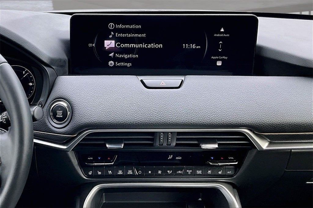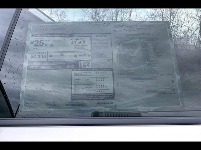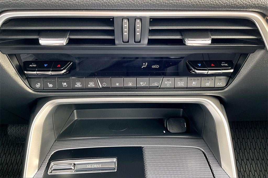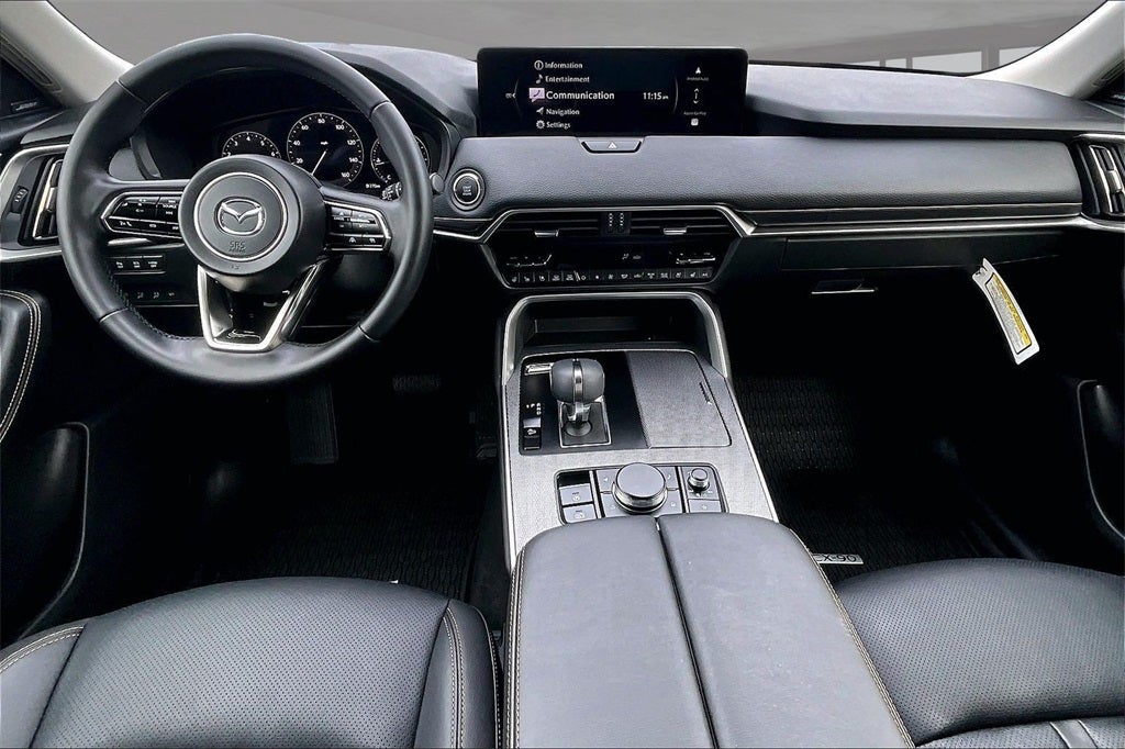 12 Speakers, 2nd-Row Captain's Chairs, 3rd row seats: bench, 4-Wheel Disc Brakes, ABS brakes, Air Conditioning, Alloy wheels, AM/FM radio: SiriusXM, Auto High-beam Headlights, Auto-dimming door mirrors, Auto-dimming Rear-View mirror, Automatic temperature control, Black Liftgate Garnish, Brake assist, Bumpers: body-color, Cargo Blocks, Compass, Cross Bars - Black, Delay-off headlights, Driver door bin, Driver vanity mirror, Dual front impact airbags, Dual front side impact airbags, E911 Automatic Emergency Notification, Electronic Stability Control, Emergency communication system: MAZDA CONNECT, Exterior Parking Camera Rear, Four wheel independent suspension, Front anti-roll bar, Front Bucket Seats, Front Center Armrest w/Storage, Front dual zone A/C, Front reading lights, Fully automatic headlights, Garage door transmitter: HomeLink, Heads-Up Display, Heated door mirrors, Heated front seats, Heated rear seats, Heated steering wheel, Heated/Ventilated Front Bucket Seats, Illuminated entry, Infotainment System Voice Command, Knee airbag, Leather Seat Trim, Leather Shift Knob, Leather steering wheel, Low tire pressure warning, Mazda Connected Services, Mazda Online Navigation, Memory seat, Navigation system: MAZDA CONNECT, Occupant sensing airbag, Outside temperature display, Overhead airbag, Overhead console, Panic alarm, Passenger door bin, Passenger vanity mirror, Power door mirrors, Power driver seat, Power Liftgate, Power moonroof, Power passenger seat, Power steering, Power windows, Radio Broadcast Data System Program Information, Radio data system, Radio: : AM/FM w/HD/Bose 12-Speaker Sound System, Rain sensing wipers, Rear air conditioning, Rear anti-roll bar, Rear reading lights, Rear seat center armrest, Rear window defroster, Rear window wiper, Remote keyless entry, SMS Text Msg Audio Delivery and Reply, Speed control, Speed-sensing steering, Split folding rear seat, Spoiler, Steering wheel mounted audio controls, Tachometer, Telescoping steering wheel, Tilt steering wheel, Traction control, Trip computer, Turn signal indicator mirrors, Variably intermittent wipers, Ventilated front seats, and Wheels: 21 x 9.5J Aluminum Alloy with Black Metal Finish.