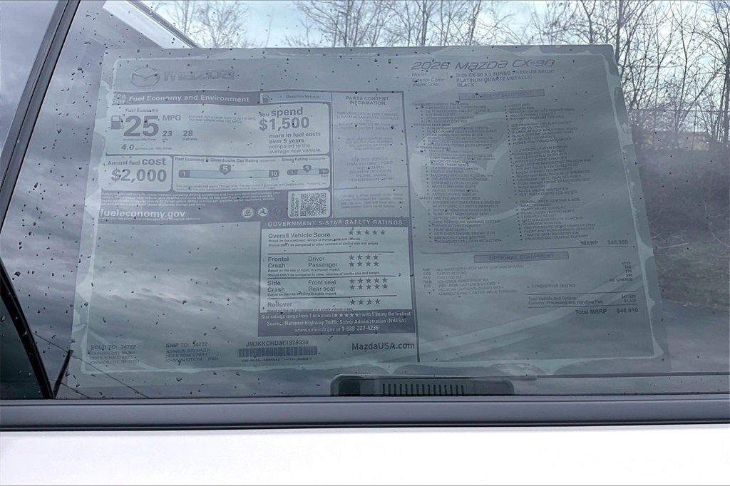 2026 Mazda CX-90 3.3 Turbo Premium Platinum Quartz 23/28 City/Highway MPG 4D Sport Utility AWD I6 Turbo 8-Speed Automatic