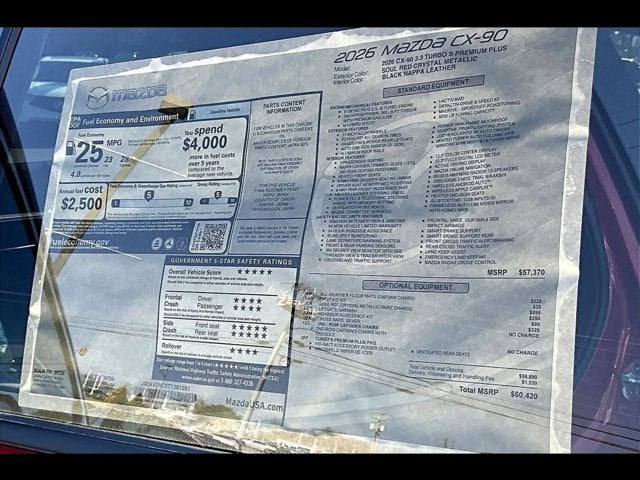 2026 Mazda CX-90 3.3 Turbo S Premium Plus Soul Red Crystal Metallic 23/28 City/Highway MPG 4D Sport Utility AWD I6 Turbo 8-Speed Automatic