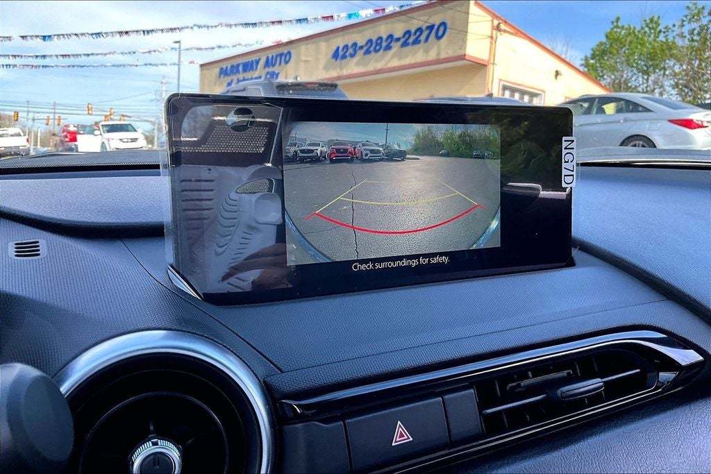 4-Wheel Disc Brakes, 9 Speakers, ABS brakes, Air Conditioning, Alloy wheels, AM/FM radio: SiriusXM, AppLink/Apple CarPlay and Android Auto, Auto High-beam Headlights, Auto-dimming door mirrors, Auto-dimming Rear-View mirror, Automatic temperature control, Black Lug Nuts and Black Wheel Locks, Brake assist, Bumpers: body-color, Cargo Net, Convertible roof lining, Convertible roof wind blocker, Delay-off headlights, Driver vanity mirror, Dual front impact airbags, Dual front side impact airbags, Electronic Stability Control, Emergency communication system: MAZDA CONNECT, Exterior Parking Camera Rear, Four wheel independent suspension, Front anti-roll bar, Front Bucket Seats, Front Center Armrest, Fully automatic headlights, Garage door transmitter: HomeLink, Glass rear window, Heated door mirrors, Heated Front Bucket Seats, Heated front seats, Illuminated entry, Leather Shift Knob, Leather Upholstery, Low tire pressure warning, MAZDA CONNECT Infotainment System, Navigation System, Occupant sensing airbag, Outside temperature display, Panic alarm, Passenger vanity mirror, Power door mirrors, Power steering, Power windows, Radio data system, Radio: Bose Audio System with Audiopilot, Rain sensing wipers, Rear anti-roll bar, Rear window defroster, Remote keyless entry, Speed control, Speed-sensing steering, Sport steering wheel, Steering wheel mounted audio controls, Tachometer, Telescoping steering wheel, Tilt steering wheel, Traction control, Trip computer, Variably intermittent wipers, and Wheels: 17 x 7 Aluminum Alloy with Black Metallic Finish.