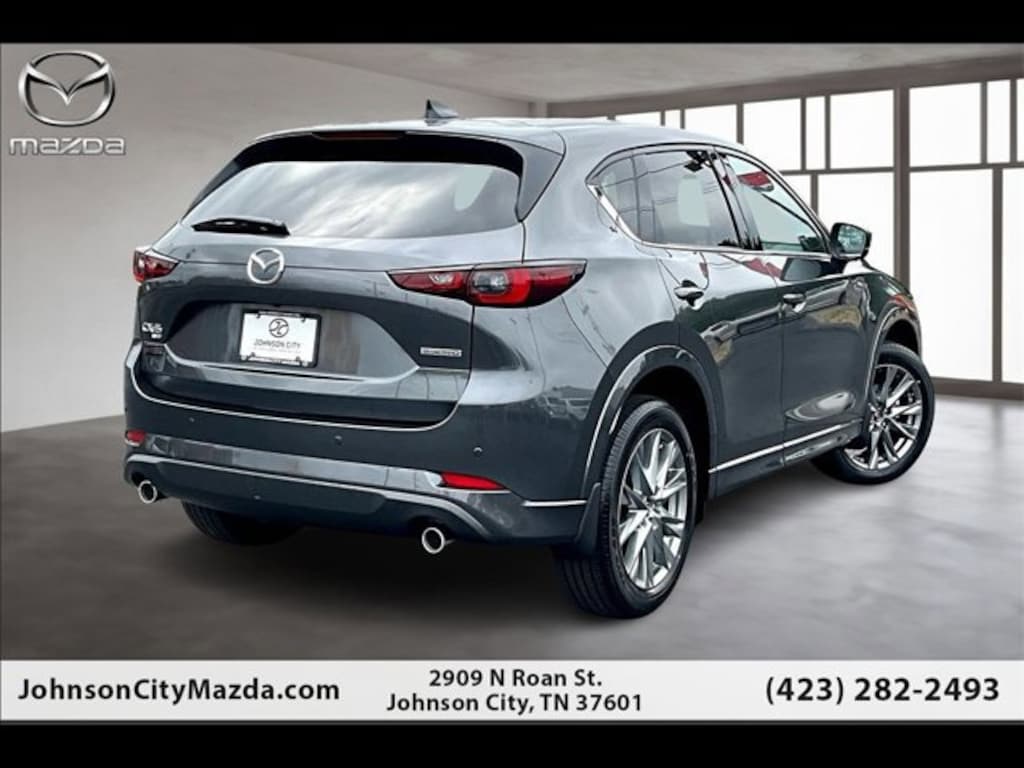 10 Speakers, 4-Wheel Disc Brakes, ABS brakes, Air Conditioning, All-Weather Floor Mats, Alloy wheels, AM/FM radio: SiriusXM, AppLink/Apple CarPlay and Android Auto, Auto High-beam Headlights, Auto-dimming Rear-View mirror, Automatic temperature control, Brake assist, Bumpers: body-color, Cargo Tray, Delay-off headlights, Driver door bin, Driver vanity mirror, Dual front impact airbags, Dual front side impact airbags, E911 Automatic Emergency Notification, Electronic Stability Control, Emergency communication system: MAZDA CONNECT, First Aid Kit, Four wheel independent suspension, Front anti-roll bar, Front Bucket Seats, Front Center Armrest w/Storage, Front dual zone A/C, Front reading lights, Fully automatic headlights, Garage door transmitter: HomeLink, Heads-Up Display, Heated door mirrors, Heated front seats, Heated rear seats, Heated steering wheel, Heated/Ventilated Front Bucket Seats, Illuminated entry, Infotainment System Voice Command, Leather Seat Trim, Leather Shift Knob, Leather steering wheel, Low tire pressure warning, Machine Gray Metallic Paint, Memory seat, Multifunction Commander Control, Occupant sensing airbag, Outside temperature display, Overhead airbag, Overhead console, Pandora, Panic alarm, Passenger door bin, Passenger vanity mirror, Power door mirrors, Power driver seat, Power Liftgate, Power moonroof, Power passenger seat, Power steering, Power windows, Radio Broadcast Data System Program Information, Radio data system, Radio: AM/FM/HD Audio System, Rain sensing wipers, Rear anti-roll bar, Rear reading lights, Rear seat center armrest, Rear window defroster, Rear window wiper, Remote keyless entry, Retractable Cargo Cover, SMS Text Msg Audio Delivery & Reply, Speed control, Speed-sensing steering, Split folding rear seat, Spoiler, Steering wheel mounted audio controls, Tachometer, Telescoping steering wheel, Tilt steering wheel, Traction control, Trip computer, Turn signal indicator mirrors, Variably intermittent wipers, Ventilated front seats, Wheel Locks, and Wheels: 19 x 7J Aluminum Alloy.