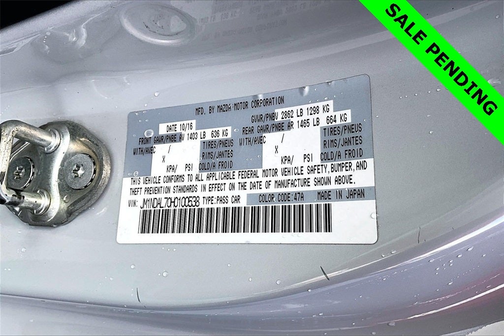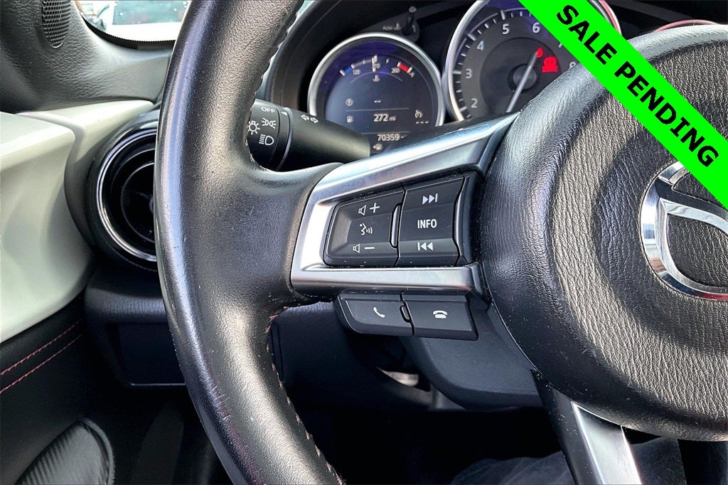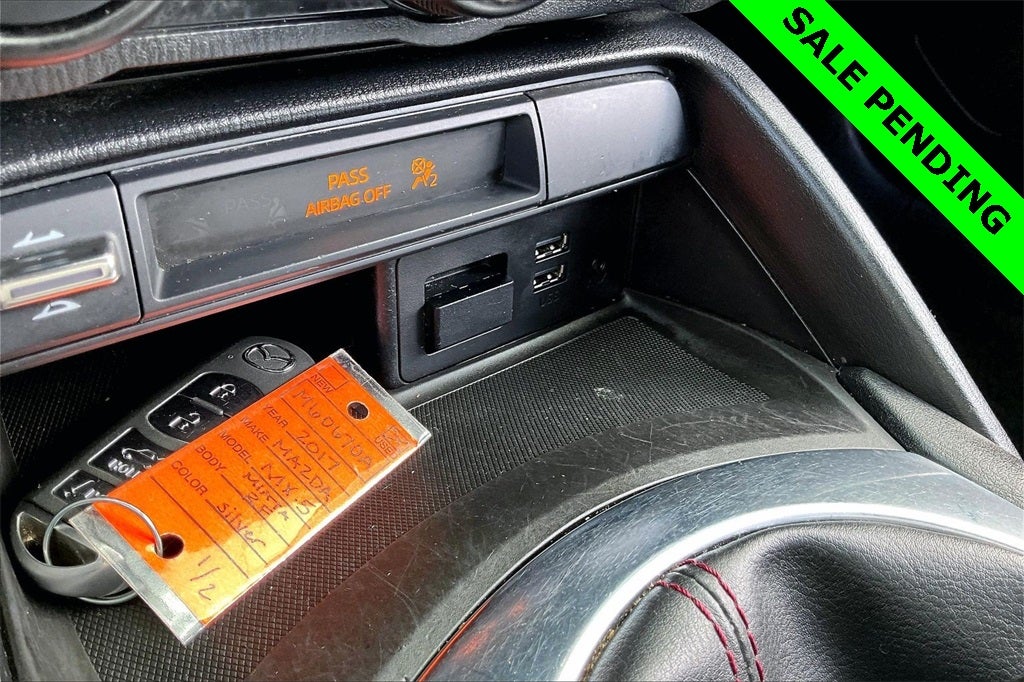 Brembo/BBS Package (Advanced Keyless Entry System, Aero Kit, Brembo Front Brakes w/Red Calipers, and Wheels: 17 BBS Forged Gunmetal Alloy), 4-Wheel Disc Brakes, 9 Speakers, ABS brakes, Air Conditioning, Alloy wheels, AM/FM radio: SiriusXM, Brake assist, Bumpers: body-color, CD player, Cloth Upholstery w/Red Stitching, Convertible HardTop, Convertible roof lining, Convertible roof wind blocker, Driver vanity mirror, Dual front impact airbags, Dual front side impact airbags, Electronic Stability Control, Emergency communication system: Mazda Connect, Four wheel independent suspension, Front anti-roll bar, Front Bucket Seats, Front Center Armrest, Glass rear window, Illuminated entry, Leather Shift Knob, Low tire pressure warning, Occupant sensing airbag, Outside temperature display, Panic alarm, Passenger vanity mirror, Power convertible roof, Power door mirrors, Power steering, Power windows, Radio data system, Radio: AM/FM/HD Stereo w/CD Player, Rear anti-roll bar, Rear window defroster, Remote keyless entry, Speed control, Speed-sensing steering, Spoiler, Sport steering wheel, Steering wheel mounted audio controls, Tachometer, Tilt steering wheel, Traction control, Trip computer, Variably intermittent wipers, and Wheels: 17 Dark Gunmetal Alloy.