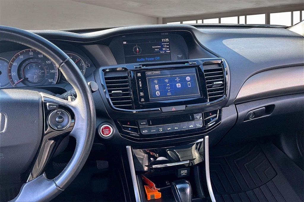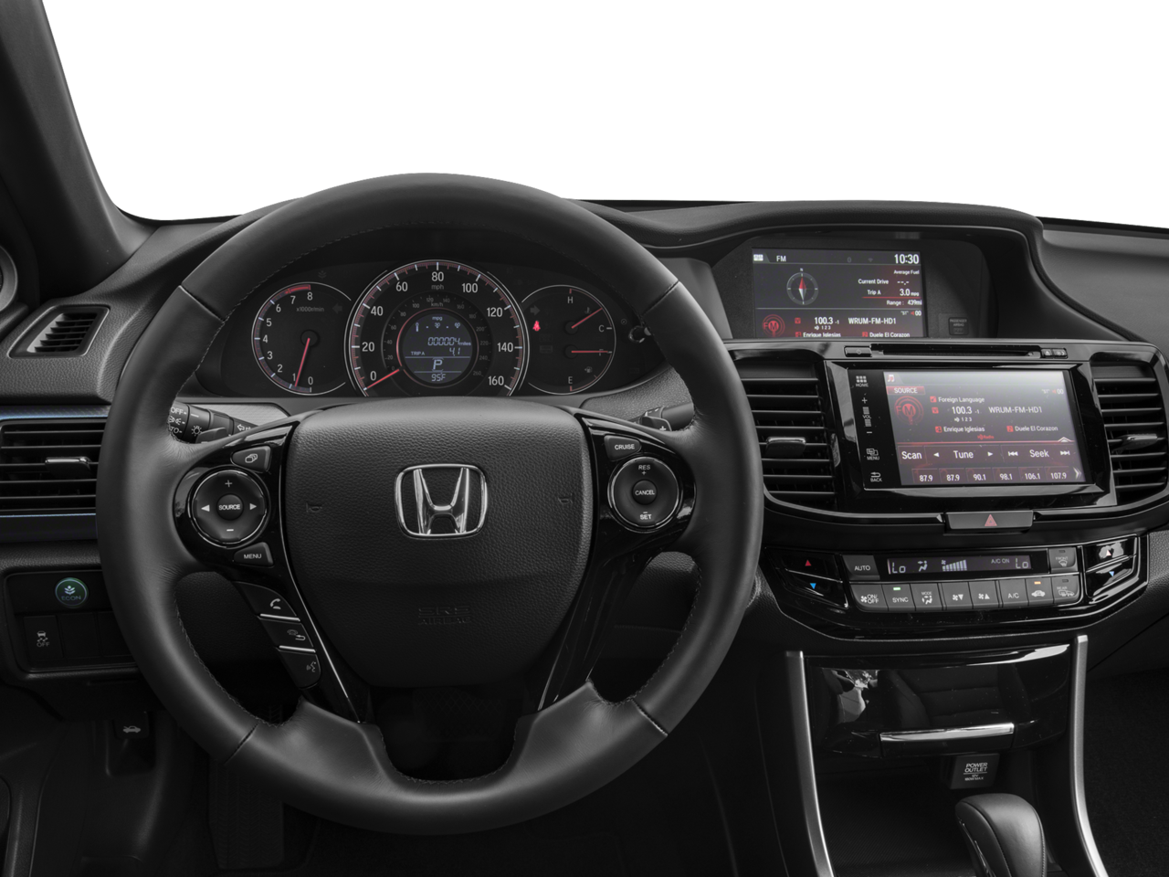 Clean CARFAX. 2017 Honda Accord EX-L Lunar Silver Metallic 18 Alloy Wheels, Apple CarPlay/Android Auto, Delay-off headlights, Exterior Parking Camera Rear, Fully automatic headlights, Heated door mirrors, Illuminated entry, Memory seat, Power driver seat, Power moonroof, Radio: 360-Watt AM/FM/HD Premium Audio System, Speed-Sensitive Wipers, Spoiler, Steering wheel mounted audio controls, Telescoping steering wheel, Tilt steering wheel. 2D Coupe FWD 2.4L I4 DOHC i-VTEC 16V CVT