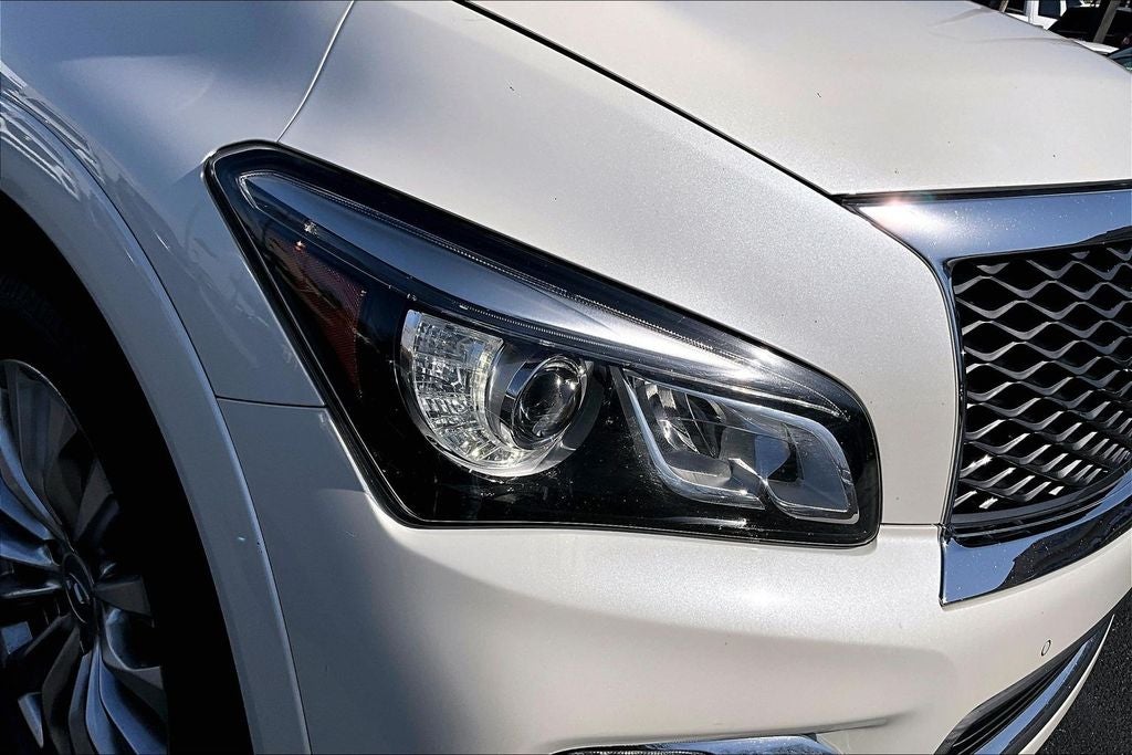 22 Tire & Wheel Package (Wheels: 22 x 8.0 14-Spoke Forged Aluminum-Alloy), All Season Package (All Season Floor Mats and Cargo Protector), Driver Assistance Package (Backup Collision Intervention (BCI), Blind Spot Intervention (BSI), Blind Spot Warning, Intelligent Cruise Control (Full-Speed Range), and Lane Departure Warning System), Theater Package (120V Power Outlet, Dual 7 Color Monitors, Heated 2nd-Row Seats, and Wireless Headphones (2)), 13 Speakers, 2.94 Axle Ratio, 3rd row seats: split-bench, 4-Wheel Disc Brakes, ABS brakes, Air Conditioning, Alloy wheels, AM/FM radio: SiriusXM, Anti-whiplash front head restraints, Auto High-beam Headlights, Auto tilt-away steering wheel, Auto-dimming door mirrors, Auto-dimming Rear-View mirror, Auto-leveling suspension, Automatic temperature control, Bose Premium Sound System, Brake assist, Bumpers: body-color, Carpeted Cargo Mat/Cargo Net & First Aid Kit, CD player, Delay-off headlights, Driver door bin, Driver vanity mirror, Dual front impact airbags, Dual front side impact airbags, Electronic Stability Control, Emergency communication system: INFINITI Connection, Four wheel independent suspension, Front anti-roll bar, Front Bucket Seats, Front Center Armrest, Front dual zone A/C, Front fog lights, Front reading lights, Fully automatic headlights, Garage door transmitter: HomeLink, Genuine wood console insert, Genuine wood dashboard insert, Genuine wood door panel insert, Heated door mirrors, Heated Front Bucket Seats, Heated front seats, Heated steering wheel, Illuminated entry, Leather Shift Knob, Leather steering wheel, Leather-Appointed Seats w/Mocha Burl Trim, Low tire pressure warning, Memory seat, Navigation System, Occupant sensing airbag, Outside temperature display, Overhead airbag, Overhead console, Panic alarm, Passenger door bin, Passenger vanity mirror, Power door mirrors, Power driver seat, Power Liftgate, Power moonroof, Power passenger seat, Power steering, Power windows, Radio data system, Rain sensing wipers, Rear air conditioning, Rear anti-roll bar, Rear audio controls, Rear reading lights, Rear seat center armrest, Rear window defroster, Rear window wiper, Reclining 3rd row seat, Remote keyless entry, Roof rack: rails only, Roof Rail Crossbars, Security system, Speed control, Speed-sensing steering, Split folding rear seat, Spoiler, Steering wheel memory, Steering wheel mounted audio controls, Tachometer, Telescoping steering wheel, Tilt steering wheel, Traction control, Trip computer, Turn signal indicator mirrors, Variably intermittent wipers, Voltmeter, and Wheels: 20 x 8.0 Split 6-Spoke Aluminum-Alloy.