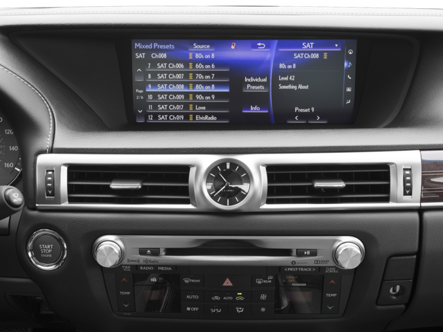 2017 Lexus GS 350 Liquid Platinum Alloy wheels, Auto High-beam Headlights, Auto tilt-away steering wheel, Auto-dimming door mirrors, Auto-dimming Rear-View mirror, Automatic temperature control, Exterior Parking Camera Rear, Fully automatic headlights, Heated & Ventilated Front Bucket Seats, Heated door mirrors, Illuminated entry, Lane Departure Warning System, Leather Shift Knob, Leather steering wheel, Memory seat, Navigation System, Power door mirrors, Power driver seat, Power moonroof, Radio: Lexus Premium AM/FM/DVD/HD Audio System, Rain sensing wipers, Rear Window Blind, Steering wheel memory, Steering wheel mounted audio controls, Telescoping steering wheel, Tilt steering wheel, Turn signal indicator mirrors. 4D Sedan RWD 3.5L V6 DOHC 24V 8-Speed Automatic with Sequential Shift