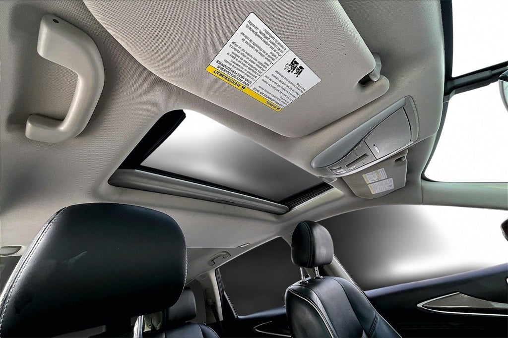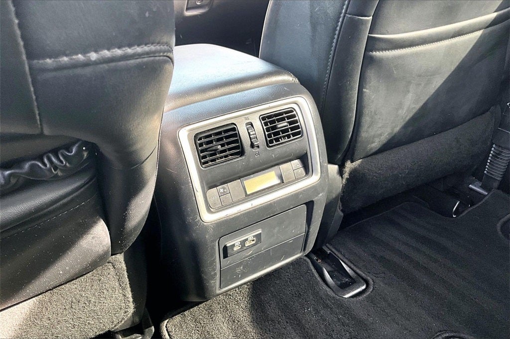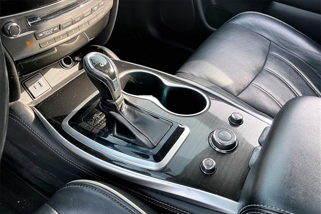 Cargo Package Essential (Cargo Protector, Console Net, First Aid Kit, and Rear Cargo Cover), Essential Package (Around View Monitor w/Moving Object Detection, Front & Rear Sonar Sensors (2FR/2RR), Illuminated Kick Plates (IKP), INFINITI InTouch w/Navigation & InTouch Services, Leather-Appointed Seat Trim, Rain-Sensing Front Windshield Wipers, and Voice Recognition for Navigation Functions), Alloy wheels, Auto-dimming Rear-View mirror, Blind Spot Warning, Electronic Stability Control, Heated door mirrors, Heated front seats, Heated steering wheel, Illuminated entry, Leather steering wheel, Leatherette Seat Trim, Memory seat, Navigation System, Outside temperature display, Power door mirrors, Power driver seat, Power Liftgate, Power moonroof, Power passenger seat, Radio: AM/FM/CD/MP3 w/Bose Premium Audio System, Reclining 3rd row seat, Steering wheel mounted audio controls, Telescoping steering wheel, Tilt steering wheel, Turn signal indicator mirrors, 13 Speakers, 3rd row seats: bench, 4-Wheel Disc Brakes, ABS brakes, Air Conditioning, AM/FM radio: SiriusXM, Anti-whiplash front head restraints, Automatic temperature control, Axle Ratio: 5.25, Bodyside moldings, Brake assist, Bumpers: body-color, Carpeted Floor Mats (4-Piece Set), CD player, Delay-off headlights, Driver door bin, Driver vanity mirror, Dual front impact airbags, Dual front side impact airbags, Four wheel independent suspension, Front anti-roll bar, Front Bucket Seats, Front Center Armrest w/Storage, Front dual zone A/C, Front fog lights, Front reading lights, Fully automatic headlights, Garage door transmitter: HomeLink, Heated Front Seats, Illuminated Kick Plates (K11), Literature Kit, Low tire pressure warning, Occupant sensing airbag, Overhead airbag, Overhead console, Panic alarm, Passenger door bin, Passenger vanity mirror, Power steering, Power windows, Radio data system, Rear air conditioning, Rear anti-roll bar, Rear Bumper Protector, Rear reading lights, Rear seat center armrest, Rear window defroster, Rear window wiper, Remote keyless entry, Roof rack: rails only, Security system, Speed control, Speed-sensing steering, Speed-Sensitive Wipers, Splash Guards, Split folding rear seat, Spoiler, Steering wheel memory, Tachometer, Traction control, Trip computer, Variably in