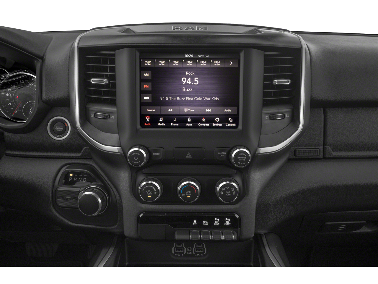 Big Horn Level 2 Equipment Group (115V Auxiliary Power Outlet, 115V Auxiliary Rear Power Outlet, 2 USB Full Function/Charge Only Media Hub, 2nd Row In Floor Storage Bins, 400W Inverter, Air Conditioning ATC w/Dual Zone Control, Auto-Dimming Rear-View Mirror, Big Horn IP Badge, Black Premium Power Mirrors, Class IV Receiver Hitch, Dampened Tailgate, Foam Bottle Insert (Door Trim Panel), Glove Box Lamp, Heated Front Seats, Heated Steering Wheel, ParkSense Front/Rear Park Assist w/Stop, Power 4-Way Driver Lumbar Adjust, Power 8-Way Driver Seat, Power Adjustable Pedals, Radio: Uconnect 4 w/8.4 Display, Rear Dome w/On/Off Switch Lamp, Rear Power Sliding Window, Rear Window Defroster, Security Alarm, SiriusXM Satellite Radio, Sun Visors w/Illuminated Vanity Mirrors, and Universal Garage Door Opener), Quick Order Package 27Z Big Horn (Big Horn Badge), Sport Appearance Package (3 Rear Seat Head Restraints, 4 Way Front Headrests, Black Interior Accents, Body Color Door Handles, Body Color Front Bumper, Body Color Premium Power Mirrors, Body Color Rear Bumper w/Step Pads, Bucket Seats, Deluxe Cloth Bucket Seats, Front Seat Back Map Pockets, Full Length Floor Console, Grille Surround 1 Body Color Texture 2 Black, Manual Adjust 4-Way Front Passenger Seat, Rear 60/40 Folding Seat, and Sport Decal), 3.21 Rear Axle Ratio, 4-Wheel Disc Brakes, 48V Belt Starter Generator, 6 Speakers, ABS brakes, Air Conditioning, Alloy wheels, AM/FM radio, Brake assist, Bumpers: chrome, Cloth Bench Seat, Compass, Delay-off headlights, Driver door bin, Dual front impact airbags, Dual front side impact airbags, Electronic Stability Control, Engine Calibration Flash (DISC), Front & Rear Rubber Floor Mats, Front anti-roll bar, Front Center Armrest w/Storage, Front fog lights, Front reading lights, Front wheel independent suspension, Fully automatic headlights, GPS Antenna Input, Heated door mirrors, Illuminated entry, Leather steering wheel, Low tire pressure warning, Occupant sensing airbag, Outside temperature display, Overhead airbag, Overhead console, Panic alarm, ParkView Rear Back-Up Camera, Passenger door bin, Passenger vanity mirror, Power door mirrors, Power steering, Power windows, Radio data system, Radio: Uconnect 3 w/5 Display, Rear anti-roll bar, Rear seat center armrest, Rear step bumper, Rear Wheelhouse Liners, Remote keyless entry, Remote Start System, Speed control, Split folding rear seat, Steering wheel mounted audio controls, Tachometer, Telescoping steering wheel, Tilt steering wheel, Traction control, Trip computer, Variably intermittent wipers, Voltmeter, Wheels: 18 x 8 Cast-Aluminum Painted, and Wheels: 20 x 9 Aluminum Chrome Clad (WRK)