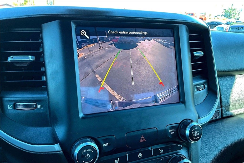 Big Horn Level 2 Equipment Group (115V Auxiliary Power Outlet, 115V Auxiliary Rear Power Outlet, 2 USB Full Function/Charge Only Media Hub, 2nd Row In Floor Storage Bins, 400W Inverter, Air Conditioning ATC w/Dual Zone Control, Auto-Dimming Rear-View Mirror, Big Horn IP Badge, Black Premium Power Mirrors, Class IV Receiver Hitch, Dampened Tailgate, Foam Bottle Insert (Door Trim Panel), Glove Box Lamp, Heated Front Seats, Heated Steering Wheel, ParkSense Front/Rear Park Assist w/Stop, Power 4-Way Driver Lumbar Adjust, Power 8-Way Driver Seat, Power Adjustable Pedals, Radio: Uconnect 4 w/8.4 Display, Rear Dome w/On/Off Switch Lamp, Rear Power Sliding Window, Rear Window Defroster, Security Alarm, SiriusXM Satellite Radio, Sun Visors w/Illuminated Vanity Mirrors, and Universal Garage Door Opener), Quick Order Package 27Z Big Horn (Big Horn Badge), Sport Appearance Package (3 Rear Seat Head Restraints, 4 Way Front Headrests, Black Interior Accents, Body Color Door Handles, Body Color Front Bumper, Body Color Premium Power Mirrors, Body Color Rear Bumper w/Step Pads, Deluxe Cloth Bucket Seats, Grille Surround 1 Body Color Texture 2 Black, Manual Adjust 4-Way Front Passenger Seat, Sport Decal, Bucket Seats, Front Seat Back Map Pockets, Full Length Floor Console, and Rear 60/40 Folding Seat), 48V Belt Starter Generator, 6 Speakers, Alloy wheels, AM/F