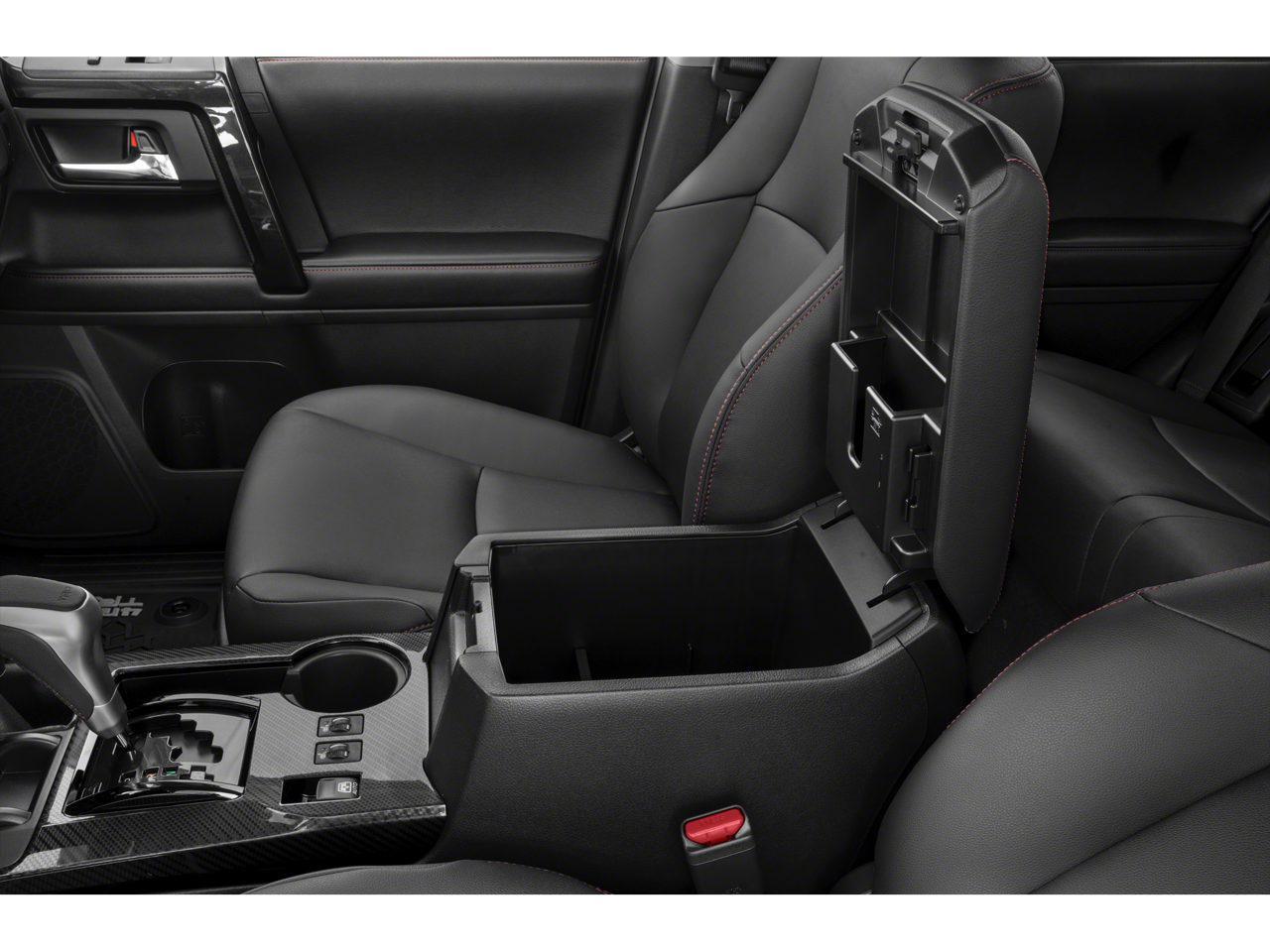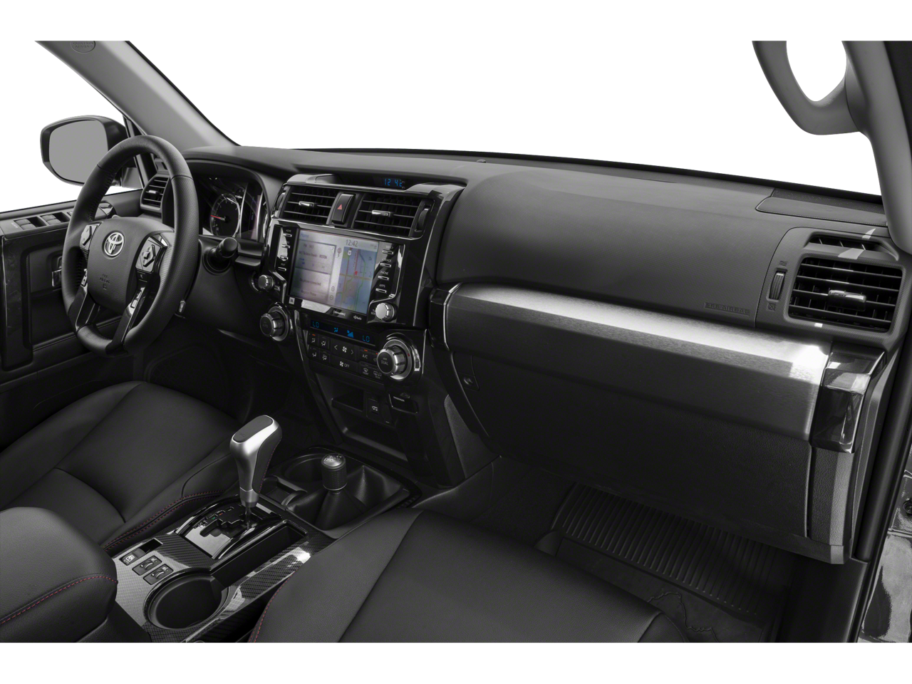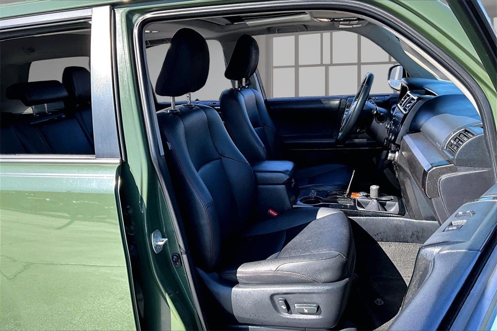 TRD Pro Package (Fog Lights, Garage Door Opener, Power Tilt & Slide Moonroof w/Sunshade, Right & Left Individual Air Conditioner, Roof Rail Delete, TRD Badging, TRD Pro Floor Mats, TRD Pro Shift Knob, TRD Roof Rack, and TRD Suspension Kit), 15 Speakers, 3.727 Axle Ratio, 4-Wheel Disc Brakes, ABS brakes, Air Conditioning, Alloy wheels, AM/FM radio: SiriusXM, Anti-whiplash front head restraints, Apple CarPlay/Android Auto, Auto High-beam Headlights, Auto-dimming Rear-View mirror, Brake assist, Bumpers: body-color, Compass, Driver door bin, Driver vanity mirror, Dual front impact airbags, Dual front side impact airbags, Electronic Stability Control, Emergency communication system: Safety Connect with 1-year trial, Exterior Parking Camera Rear, Front anti-roll bar, Front Bucket Seats, Front Center Armrest, Front fog lights, Front reading lights, Front wheel independent suspension, Garage door transmitter: HomeLink, Heated door mirrors, Heated Front Bucket Seats, Heated front seats, Illuminated entry, Knee airbag, Leather Shift Knob, Low tire pressure warning, Navigation System, Occupant sensing airbag, Outside temperature display, Overhead airbag, Overhead console, Panic alarm, Passenger door bin, Passenger vanity mirror, Power door mirrors, Power driver seat, Power moonroof, Power passenger seat, Power steering, Power windows, Radio: Premium JBL Audio w/Navigation, Rear anti-roll bar, Rear seat center armrest, Rear window defroster, Rear window wiper, Remote keyless entry, Roof rack, Security system, Softex Synthetic Leather Seat Trim, Speed control, Speed-sensing steering, Split folding rear seat, Spoiler, Steering wheel mounted audio controls, Tachometer, Telescoping steering wheel, Tilt steering wheel, Traction control, Trip computer, Turn signal indicator mirrors, Variably intermittent wipers, and Wheels: TRD 17 Matte Black Alloy.